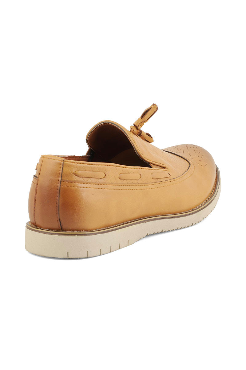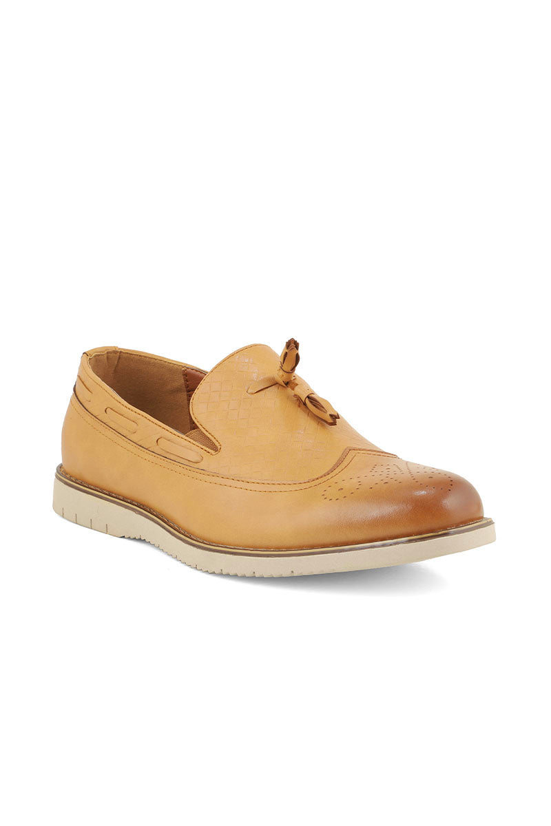 Insignia’ mustard leather loafers are trimmed with a tassel and set on an angular midsole that extends out around the edges for a modern slant.
