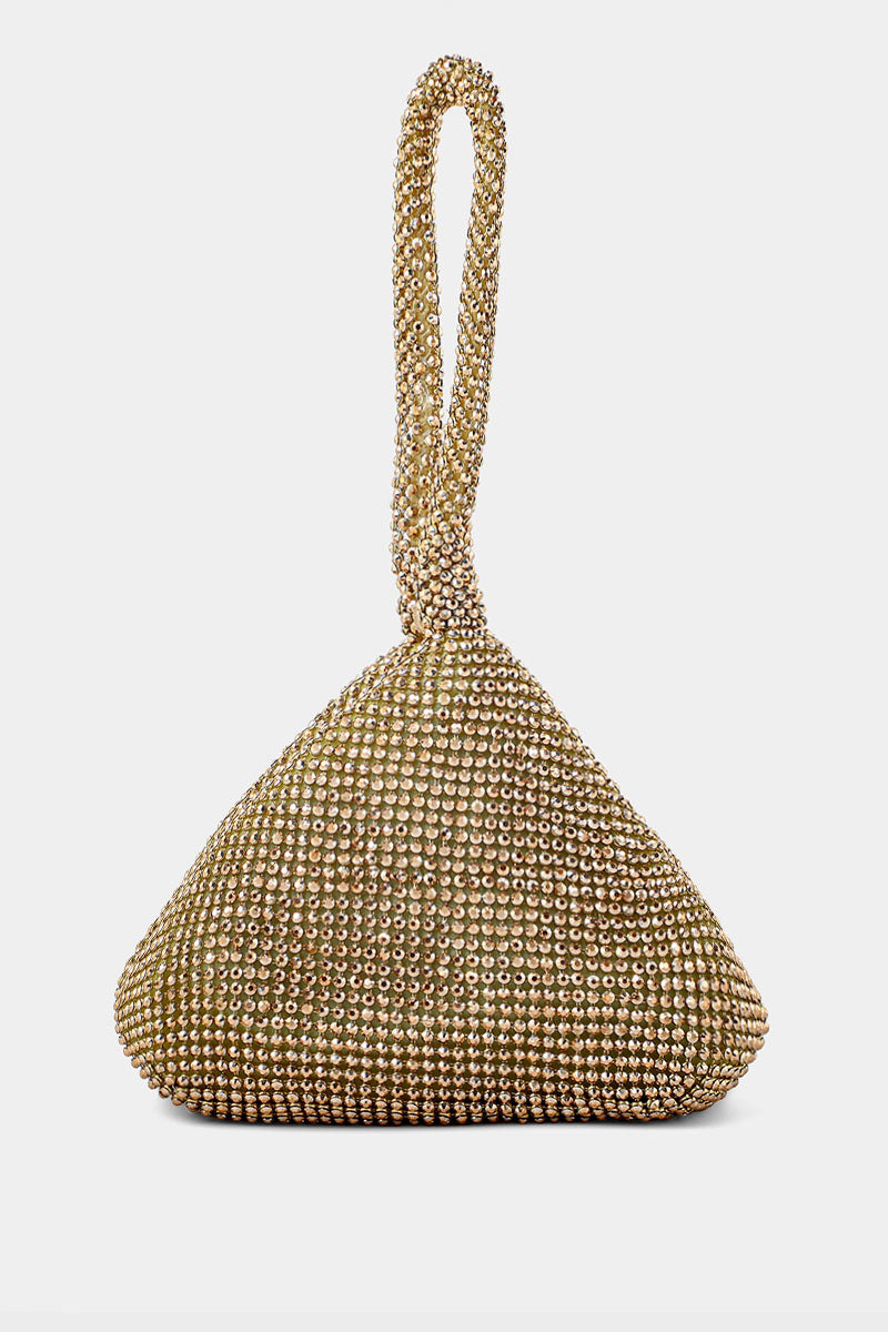 Elegant golden party wear clutch with a sleek design and shimmering finish, perfect for a glamorous and sophisticated look.