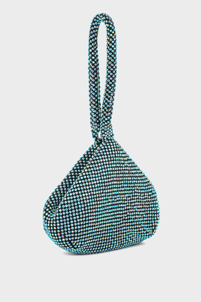 Elegant green party wear clutch with a sleek design and shimmering finish, perfect for a glamorous and sophisticated look.