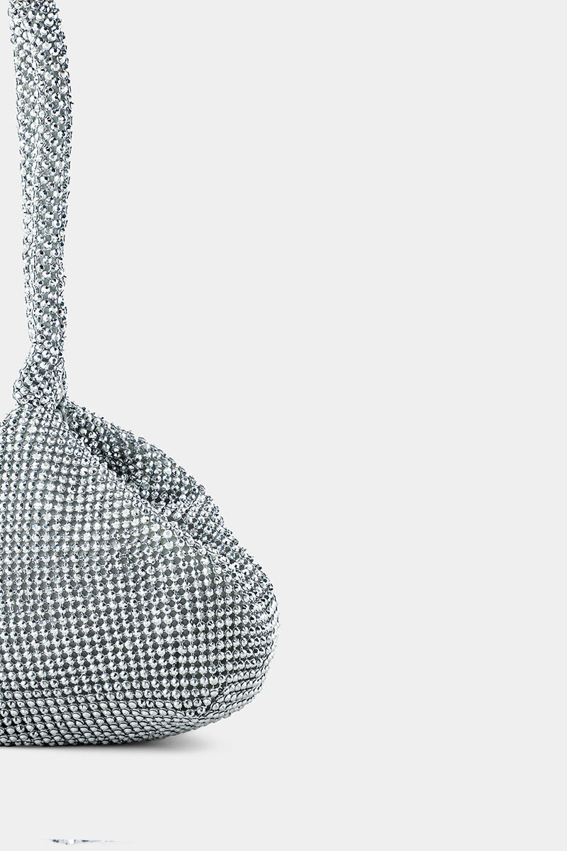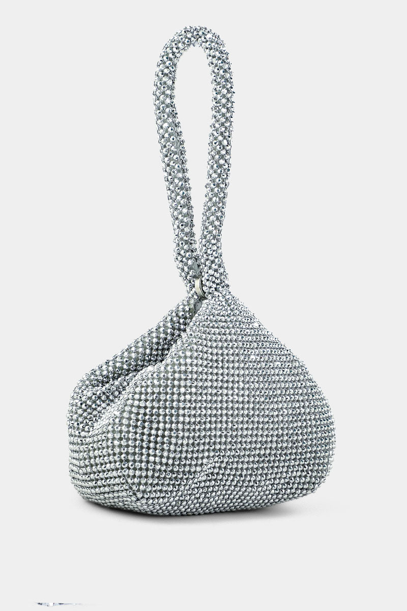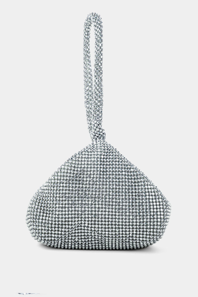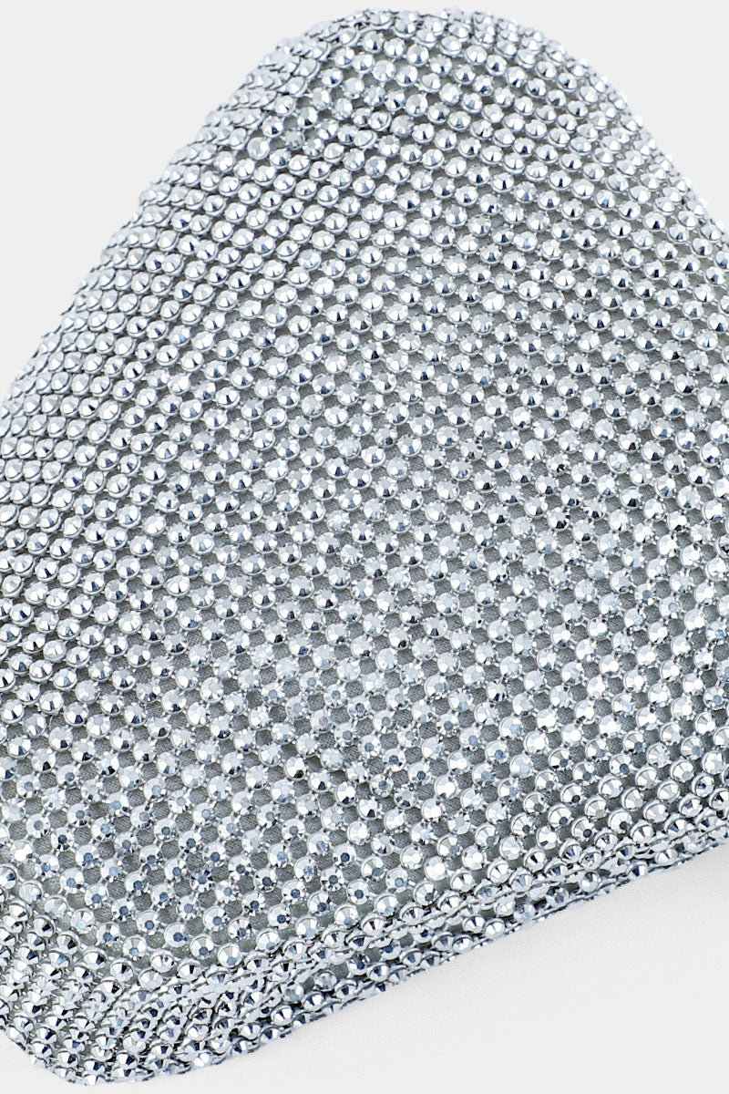Elegant silver party wear clutch with a sleek design and shimmering finish, perfect for a glamorous and sophisticated look.