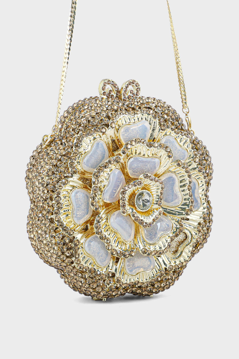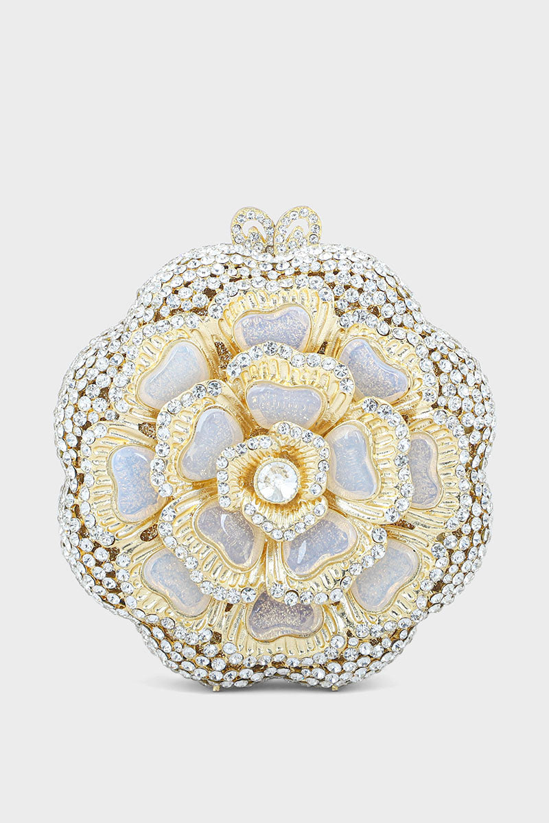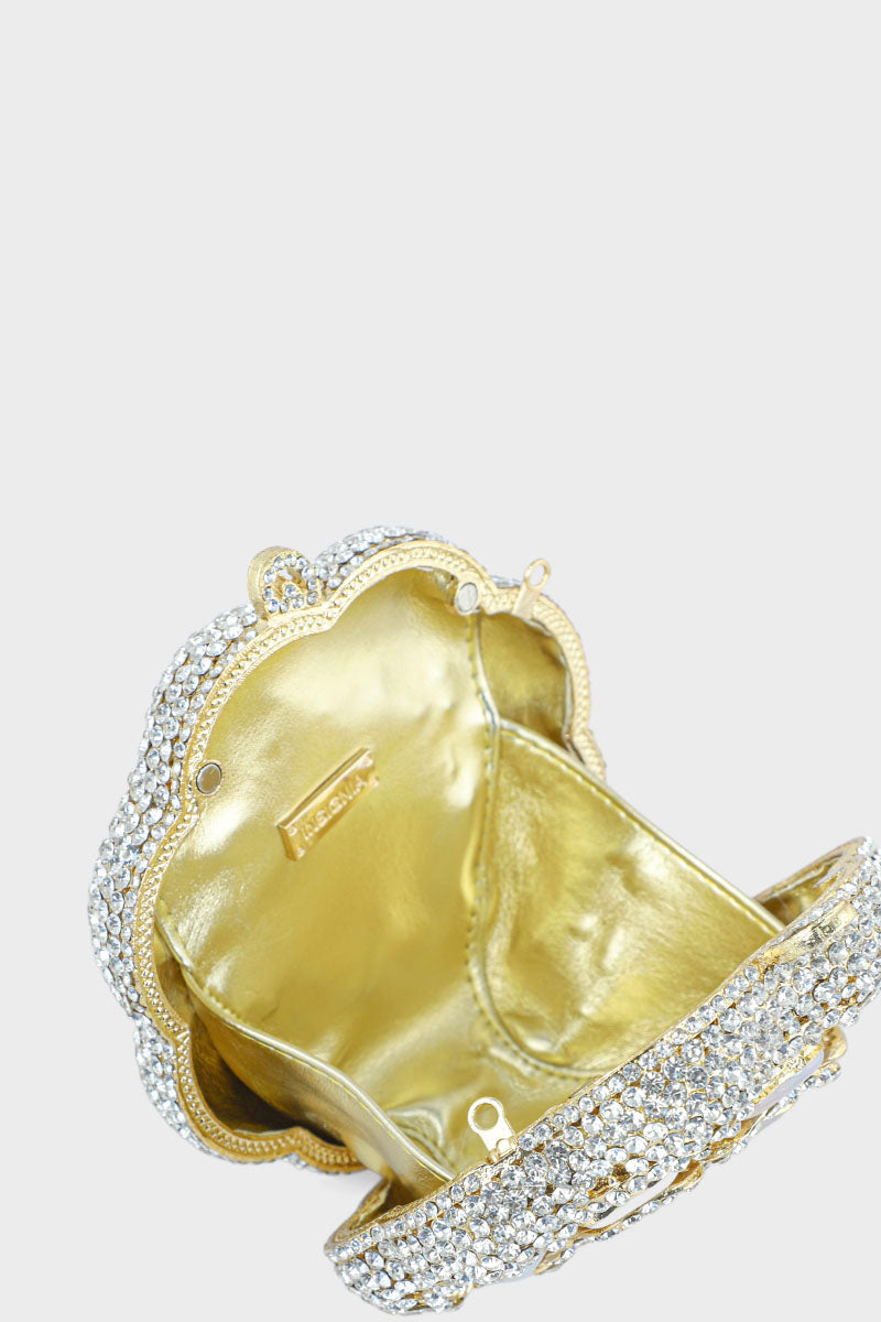 Elegant silver party wear clutch with a stylish design and shimmering finish, perfect for a glamorous and sophisticated look.