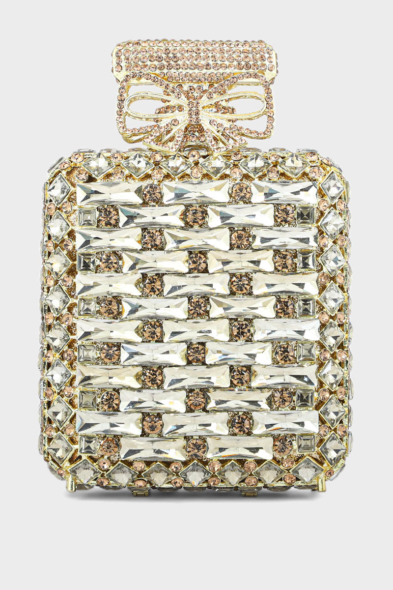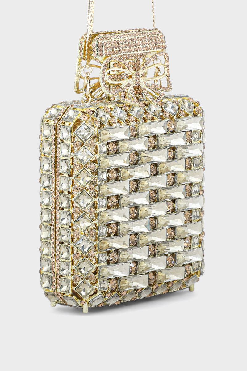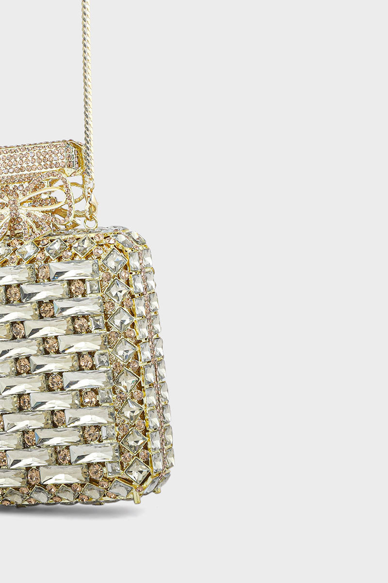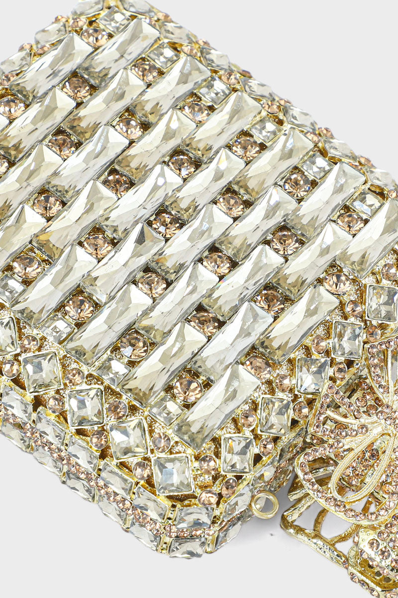Glamorous golden party wear clutch with a sleek design and shimmering finish, perfect for an elegant and sophisticated look.