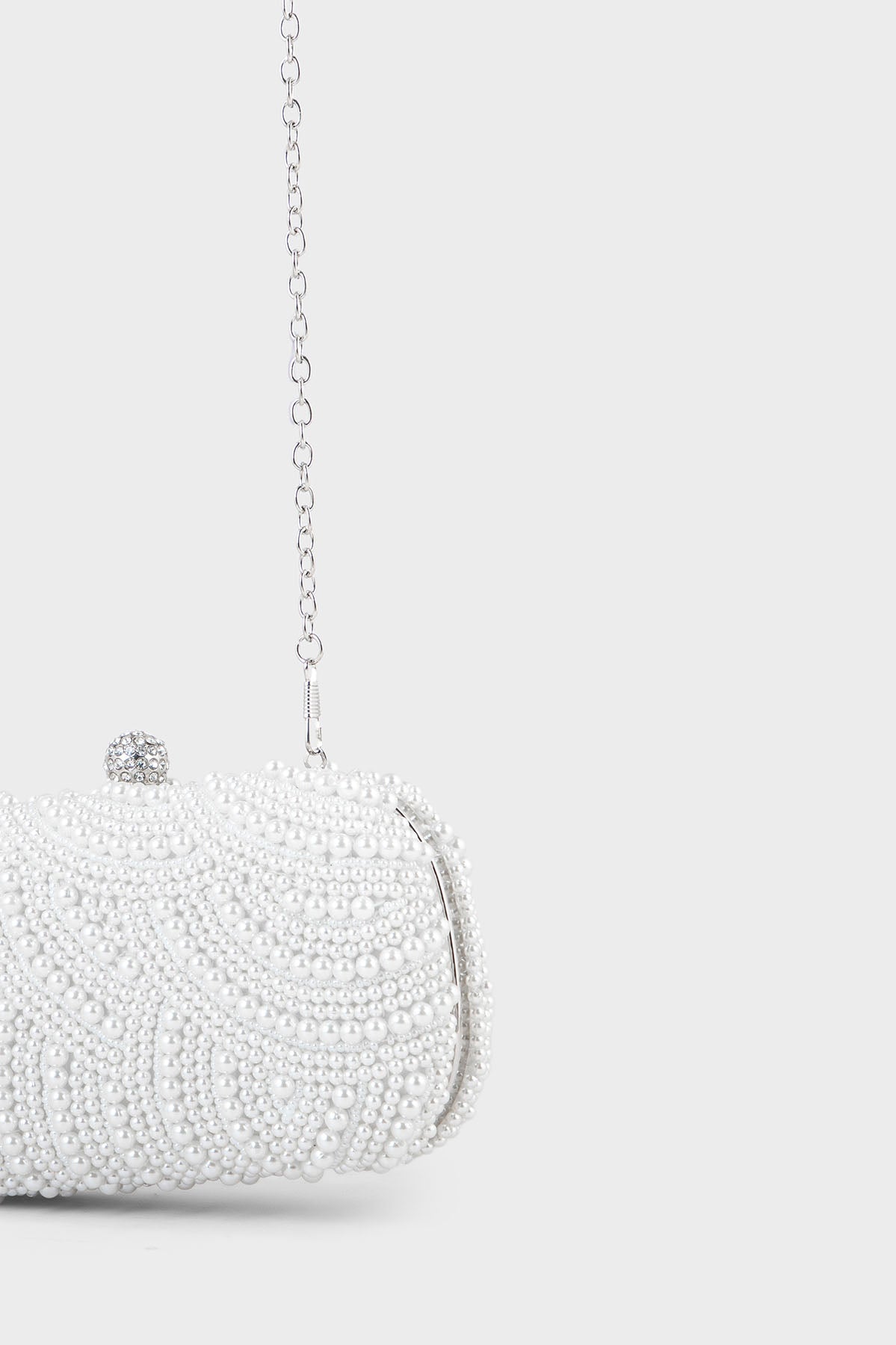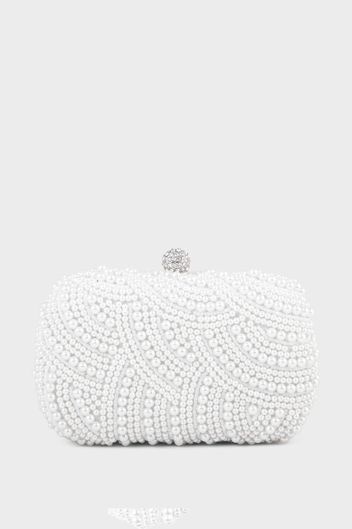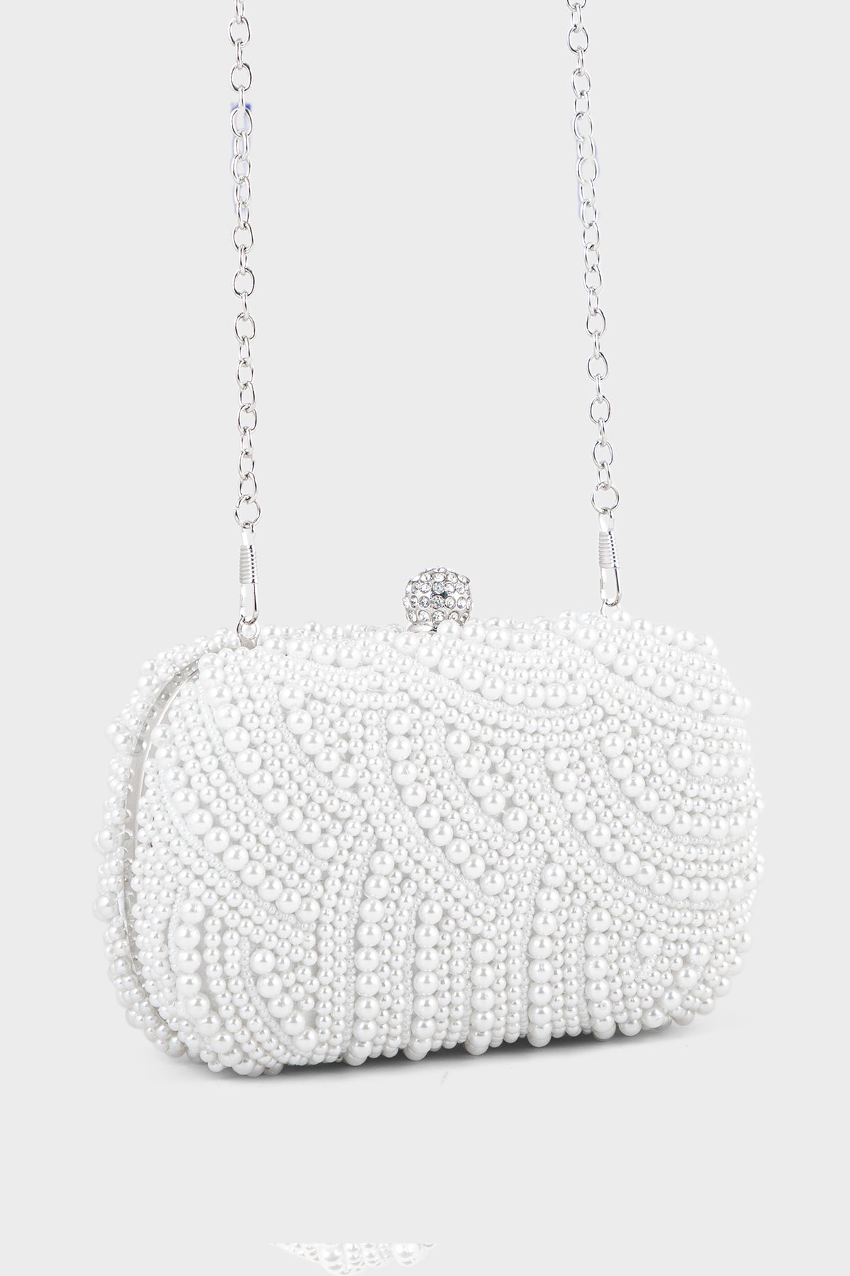 A sleek white clutch that effortlessly complements your party look with its elegant design.