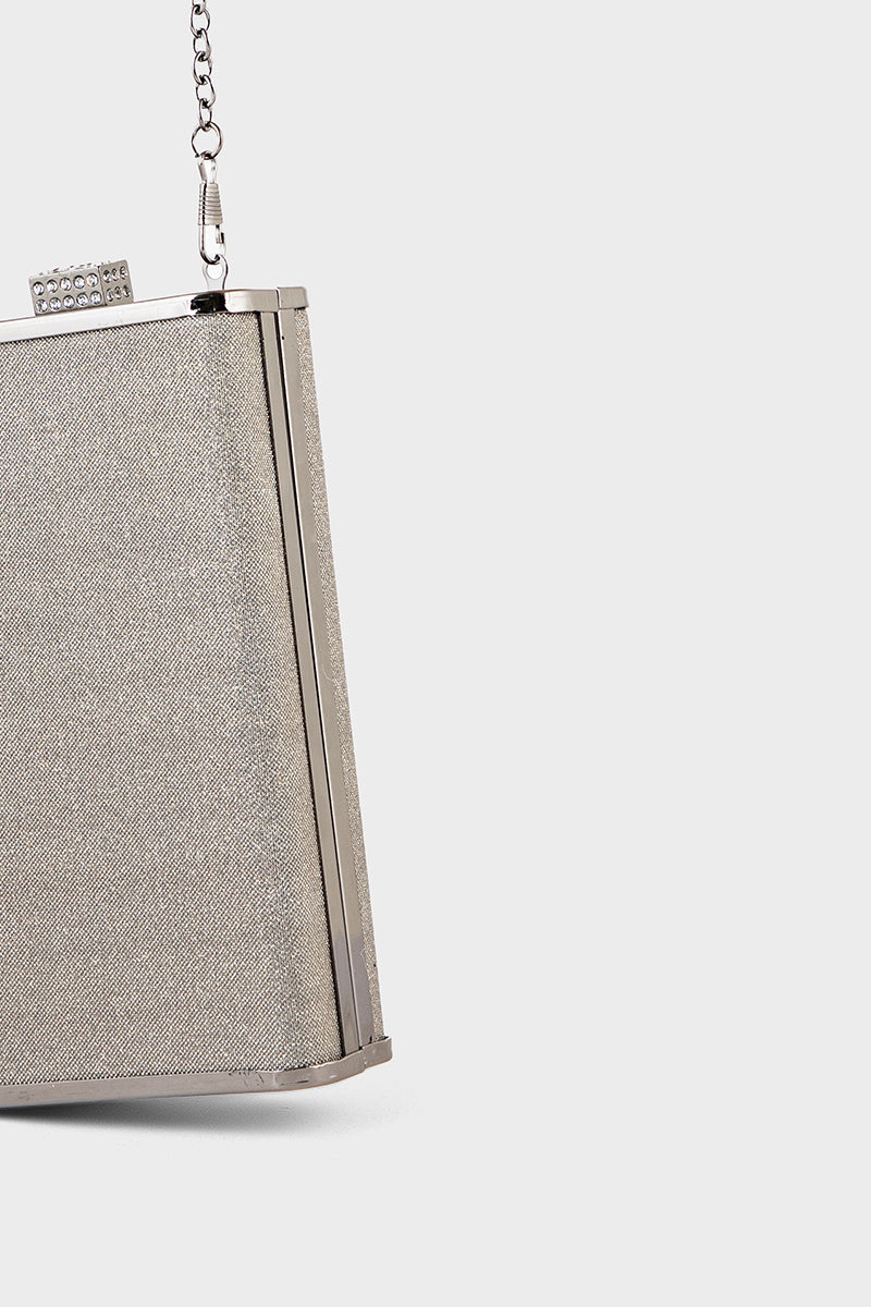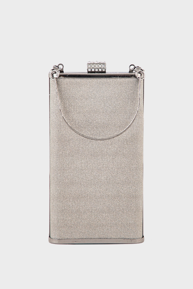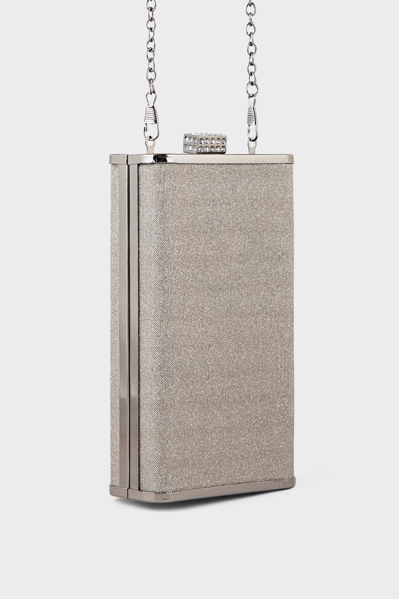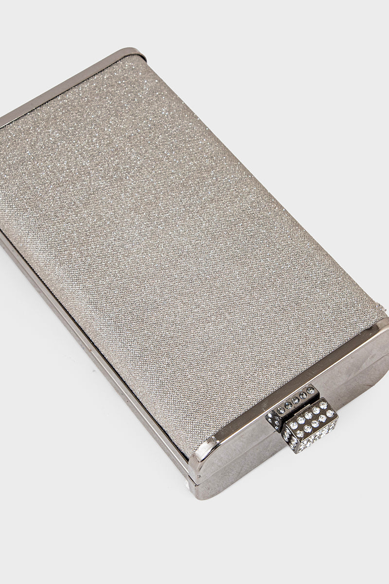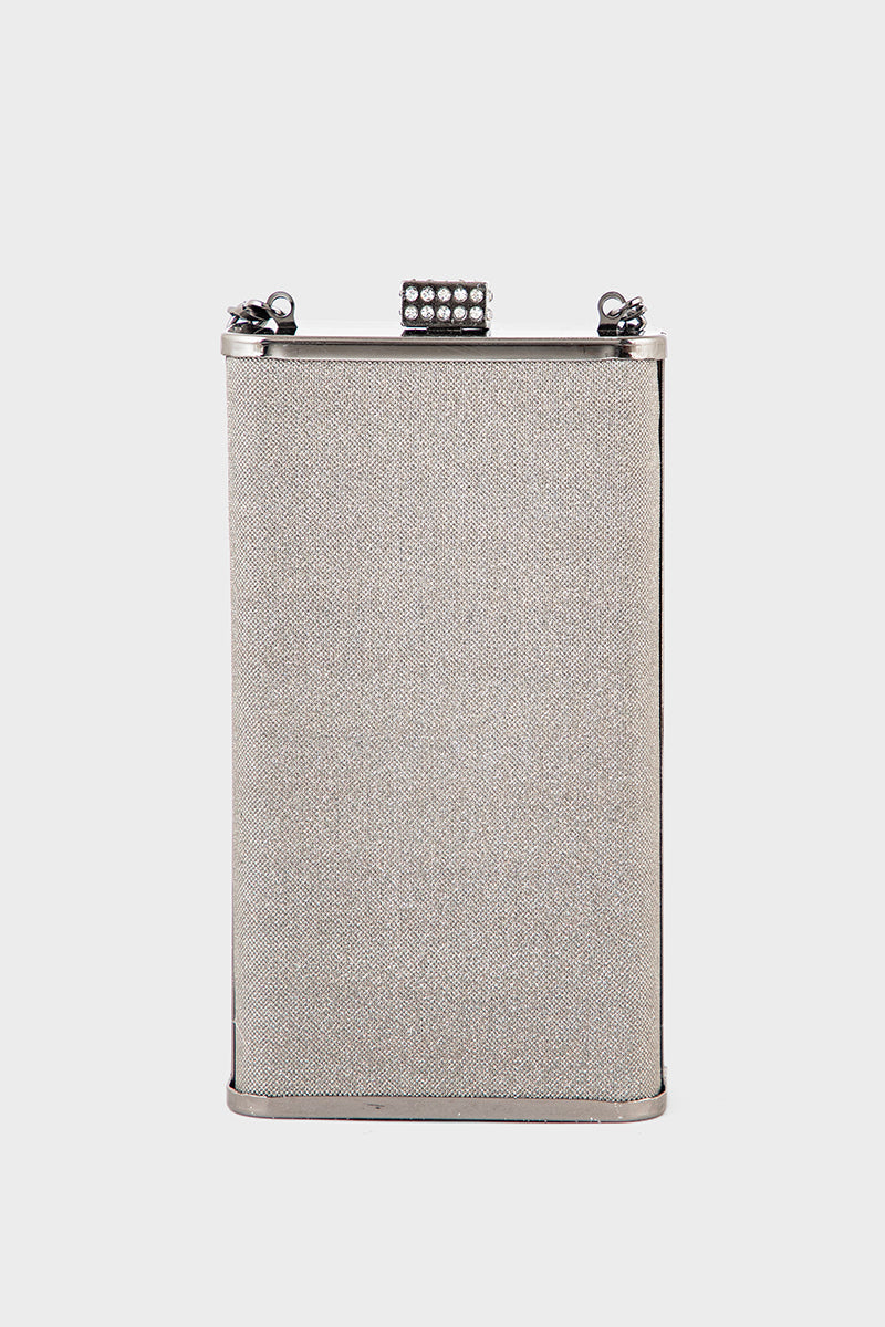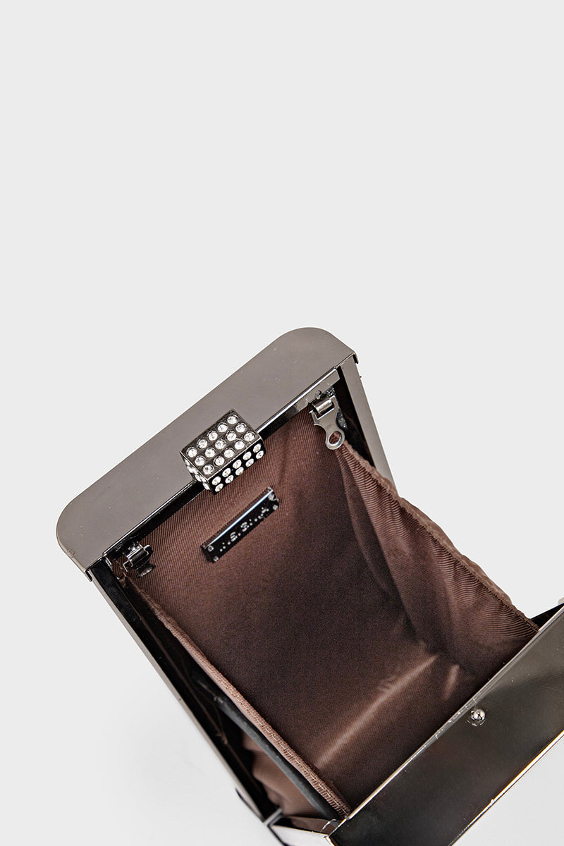 Gun metallic party clutch exuding bold elegance for unforgettable evenings.