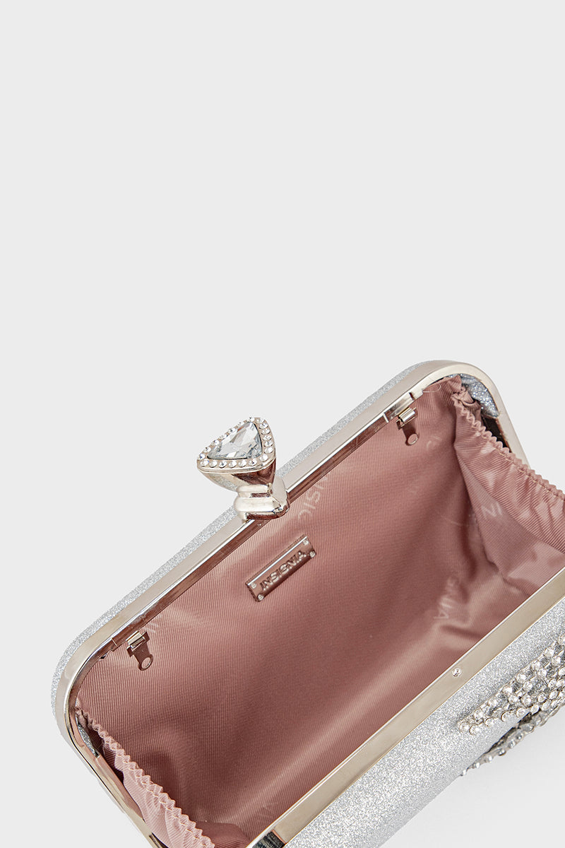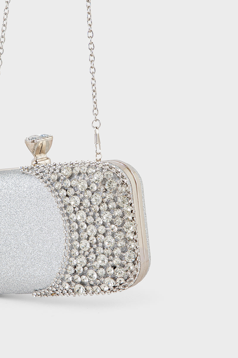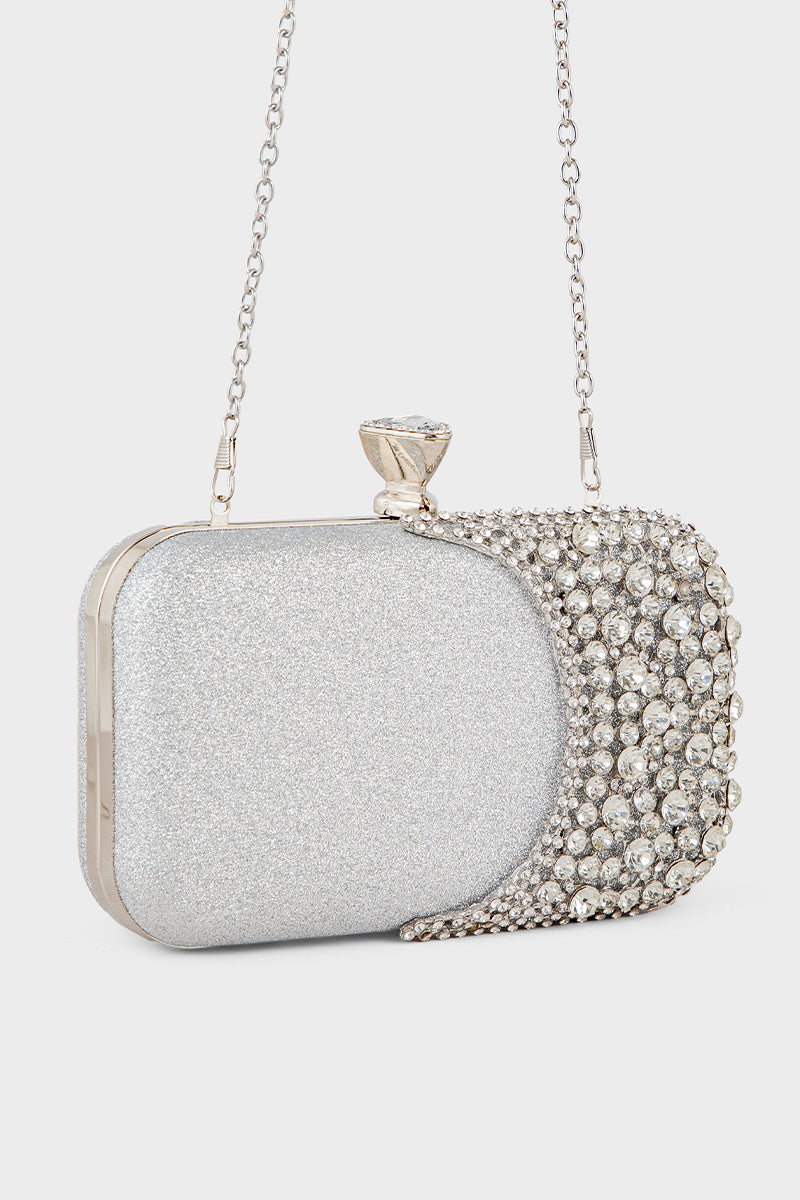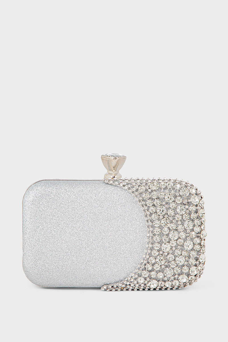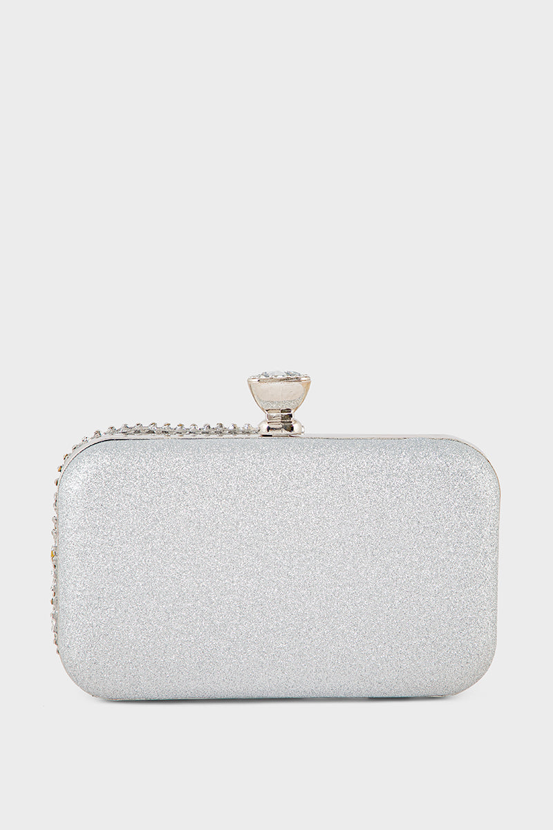 Shine with sophistication using the Party Wear Clutch in silver, perfect for adding a glamorous touch to your evening ensemble.