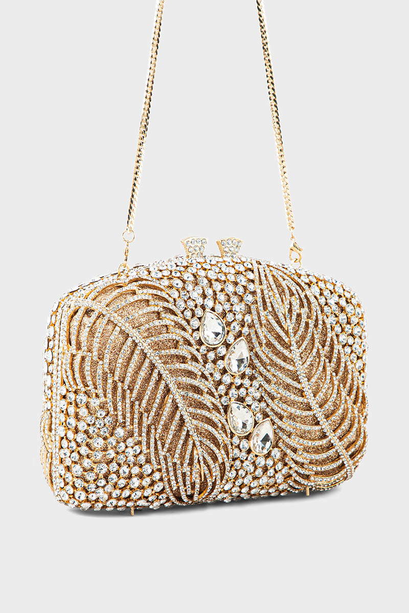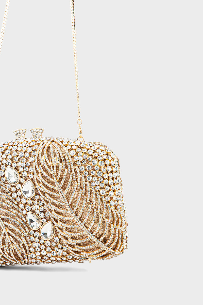 Shine with elegance using the Party Wear Clutch in golden, perfect for adding a touch of glamour to any occasion.