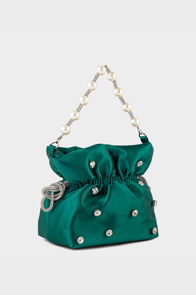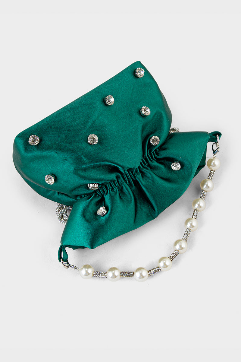 Make a bold statement with the Party Wear Clutch in dark green, designed to add a vibrant touch to your evening ensemble.