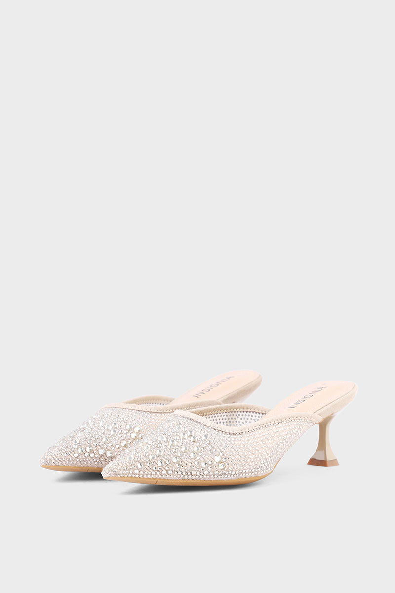 These party wear mules in beige combine comfort with a sophisticated flair, ideal for special occasions.