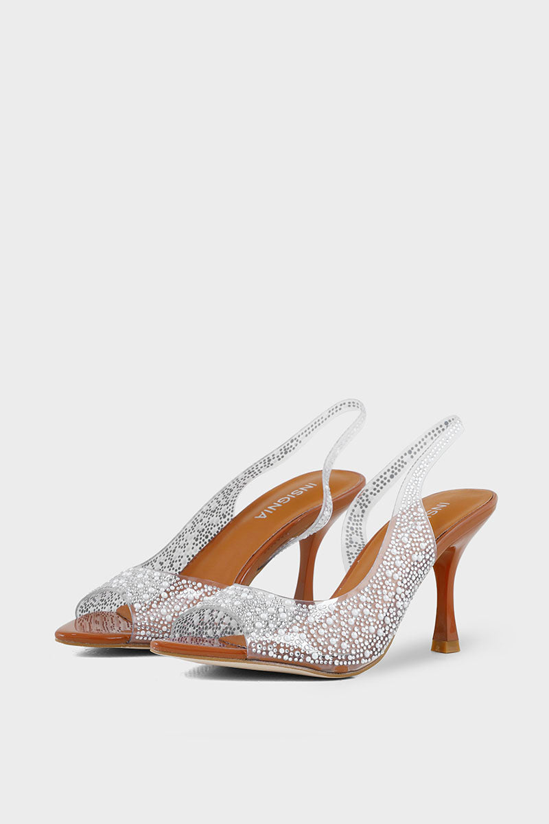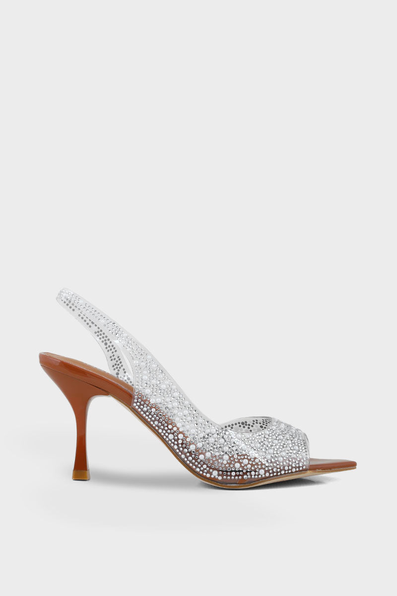 Elevate your evening look with these beige party wear sandals, blending sophistication with understated elegance.
