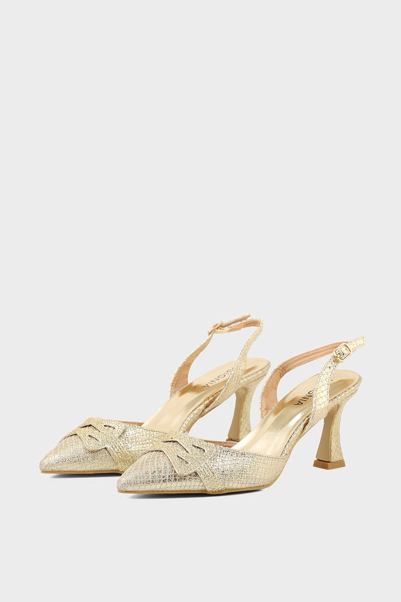 Make a fashion statement at parties with our Golden Party Wear Sling Back shoes, a versatile and elegant accessory for celebrating in style.