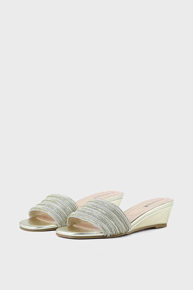 Elevate your party attire with the Golden Party Wear Slip-Ons, designed to make a bold and stylish statement.