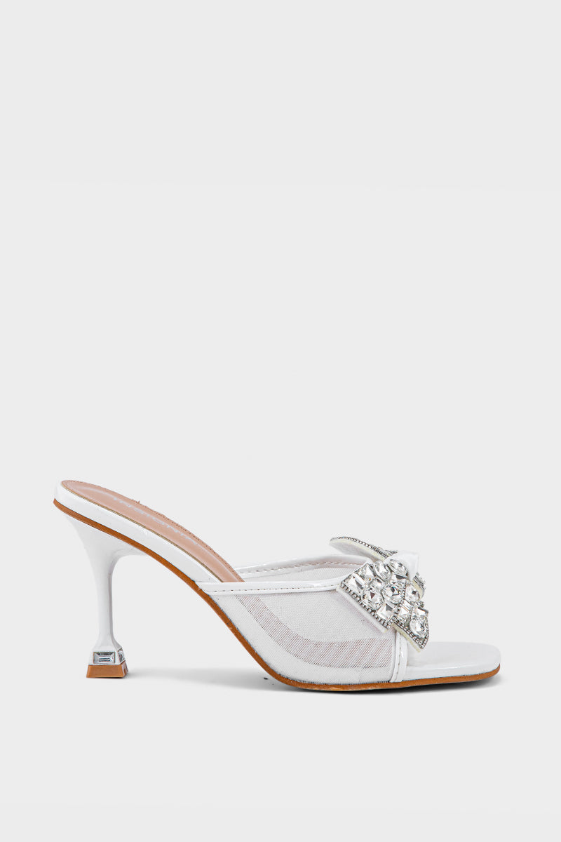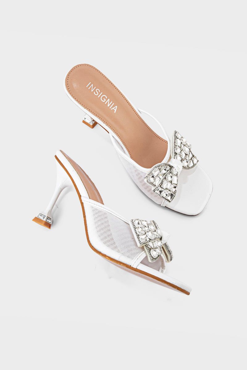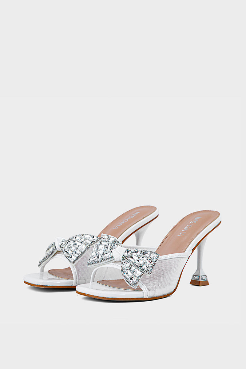 Embrace timeless elegance with these white party wear slip-ons, designed to enhance your look for any festive occasion.
