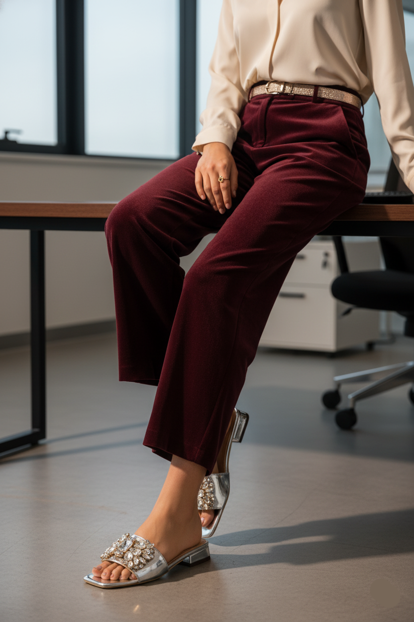 Elegant silver party wear slip-on with a shimmering finish and stylish design, perfect for a sophisticated and glamorous look.