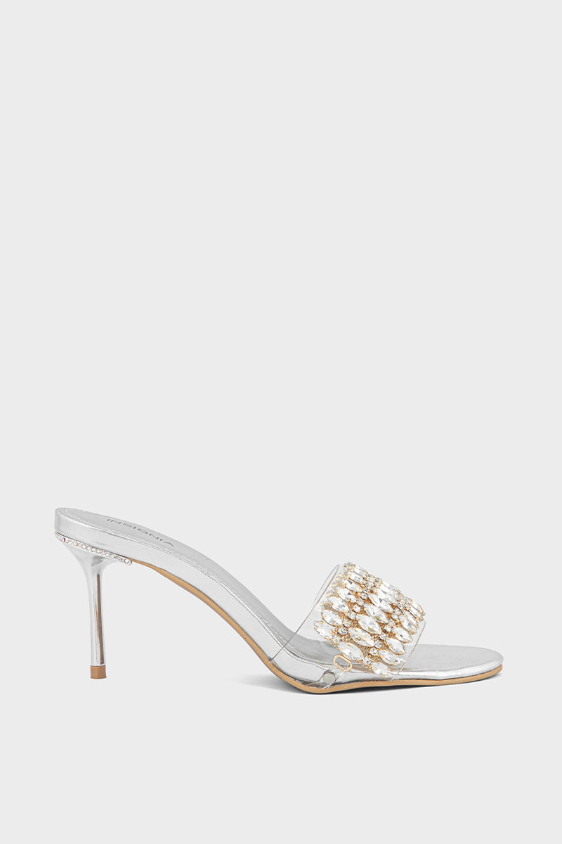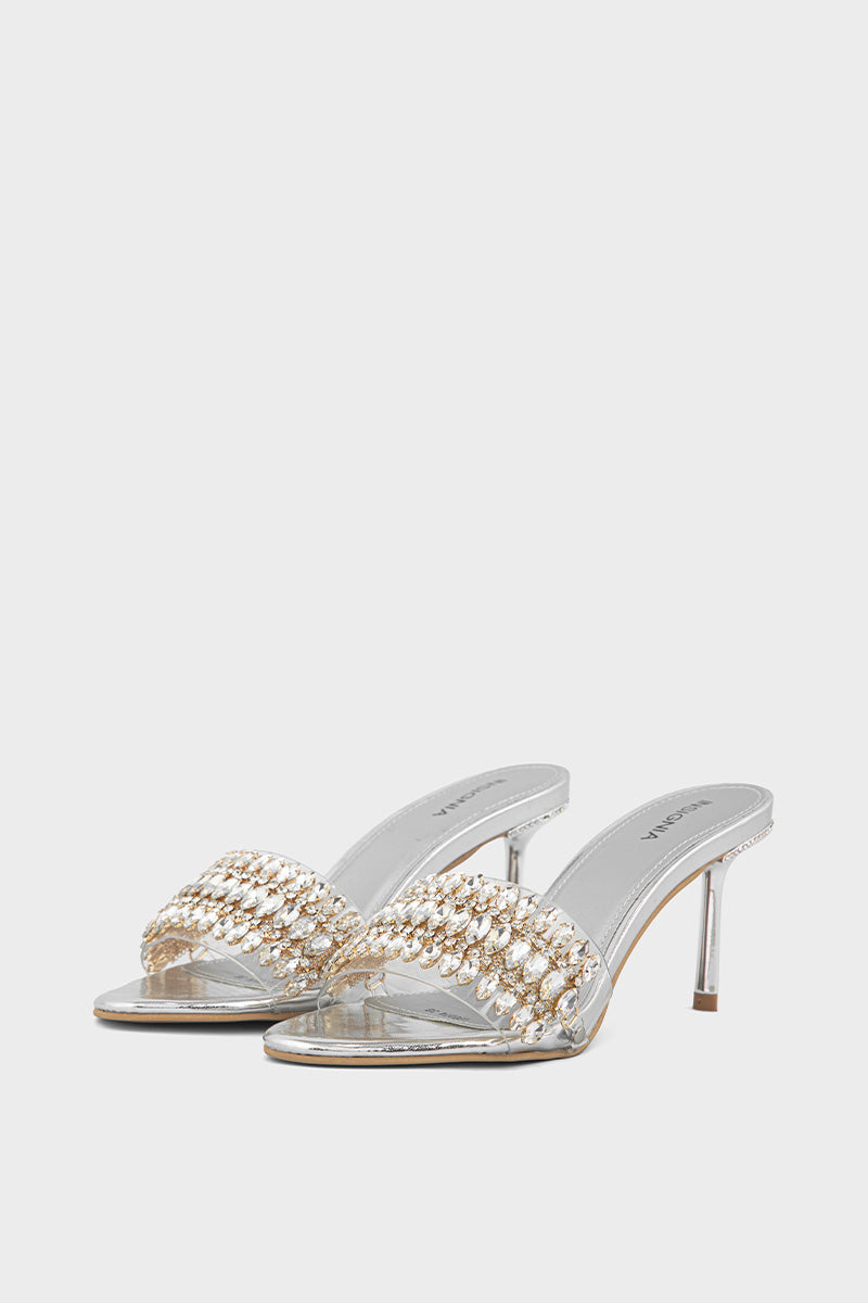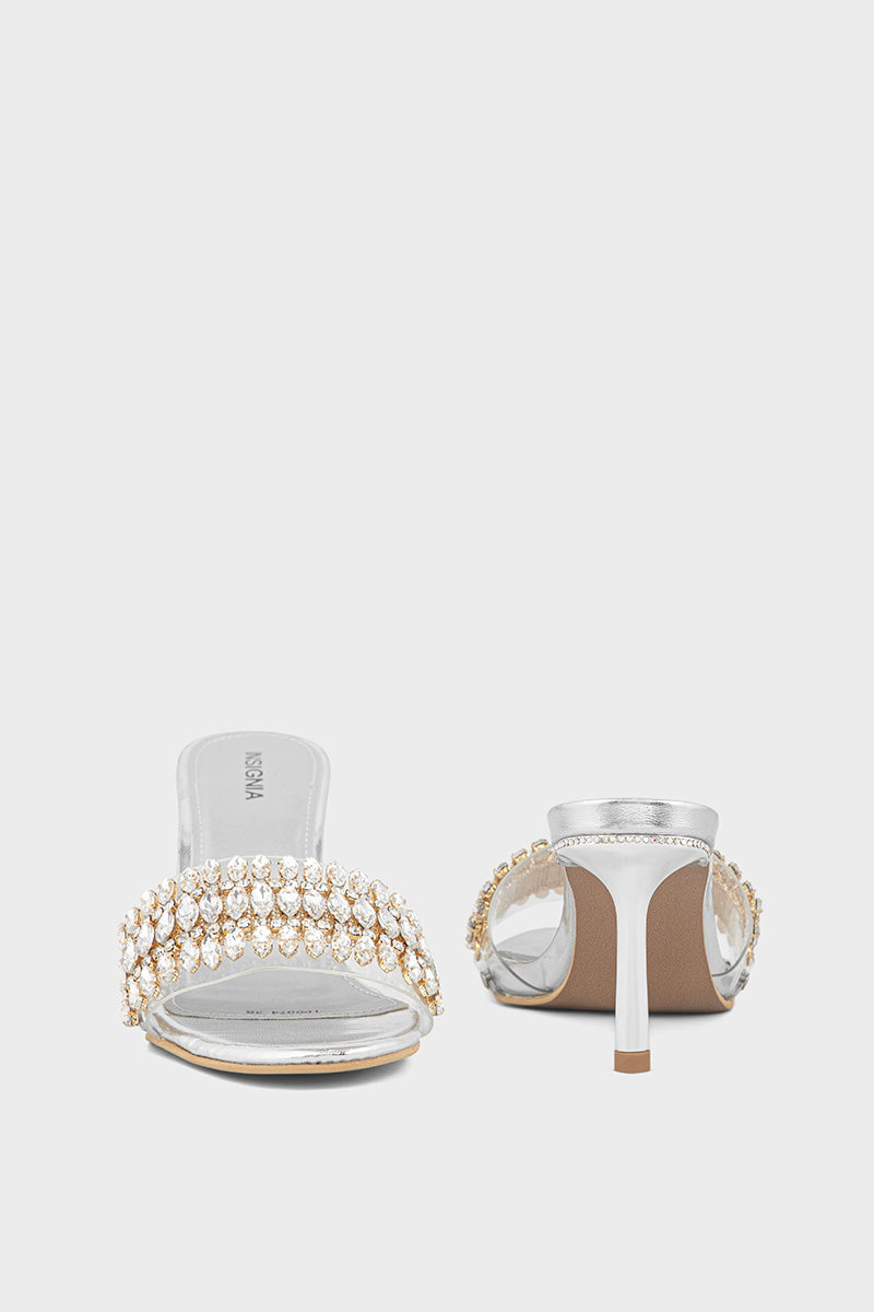 Description: Shiny silver slip-on shoes perfect for glamorous party appearances.