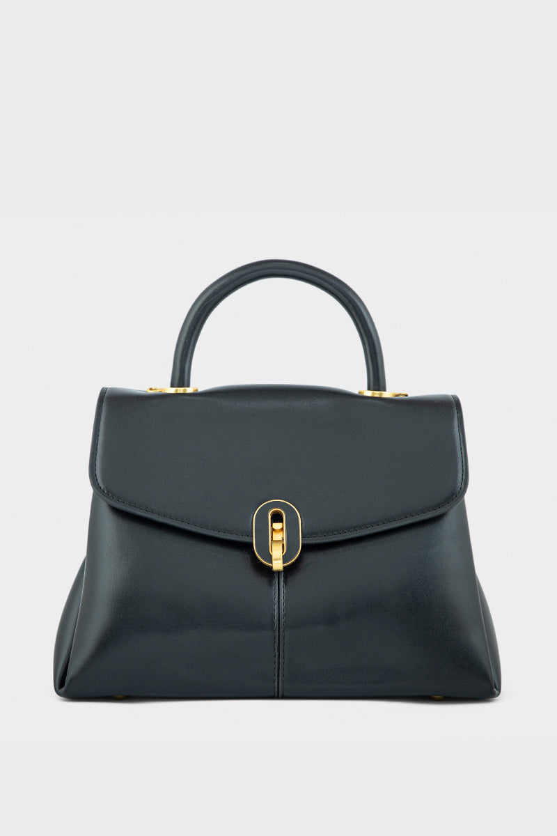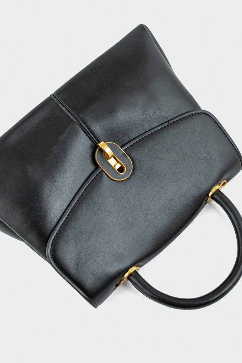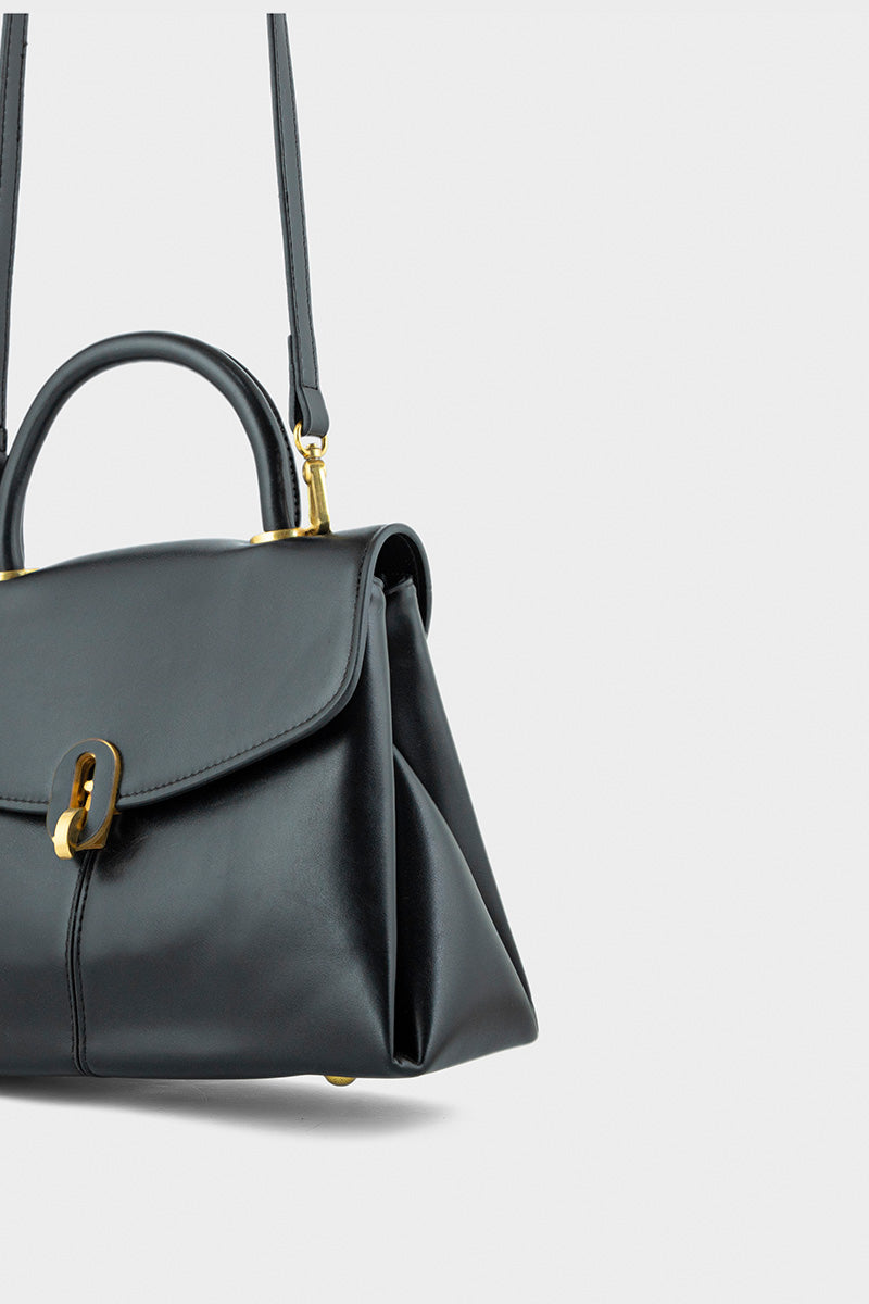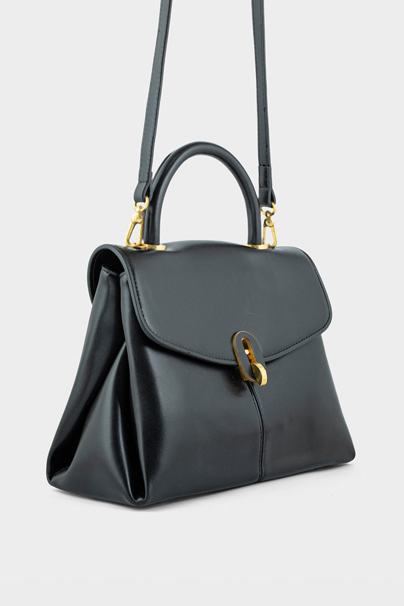 Description: Sleek black saddle shoulder bag designed for everyday use with a classic look.