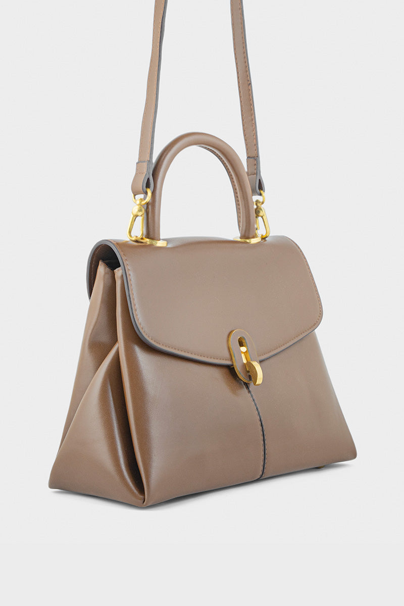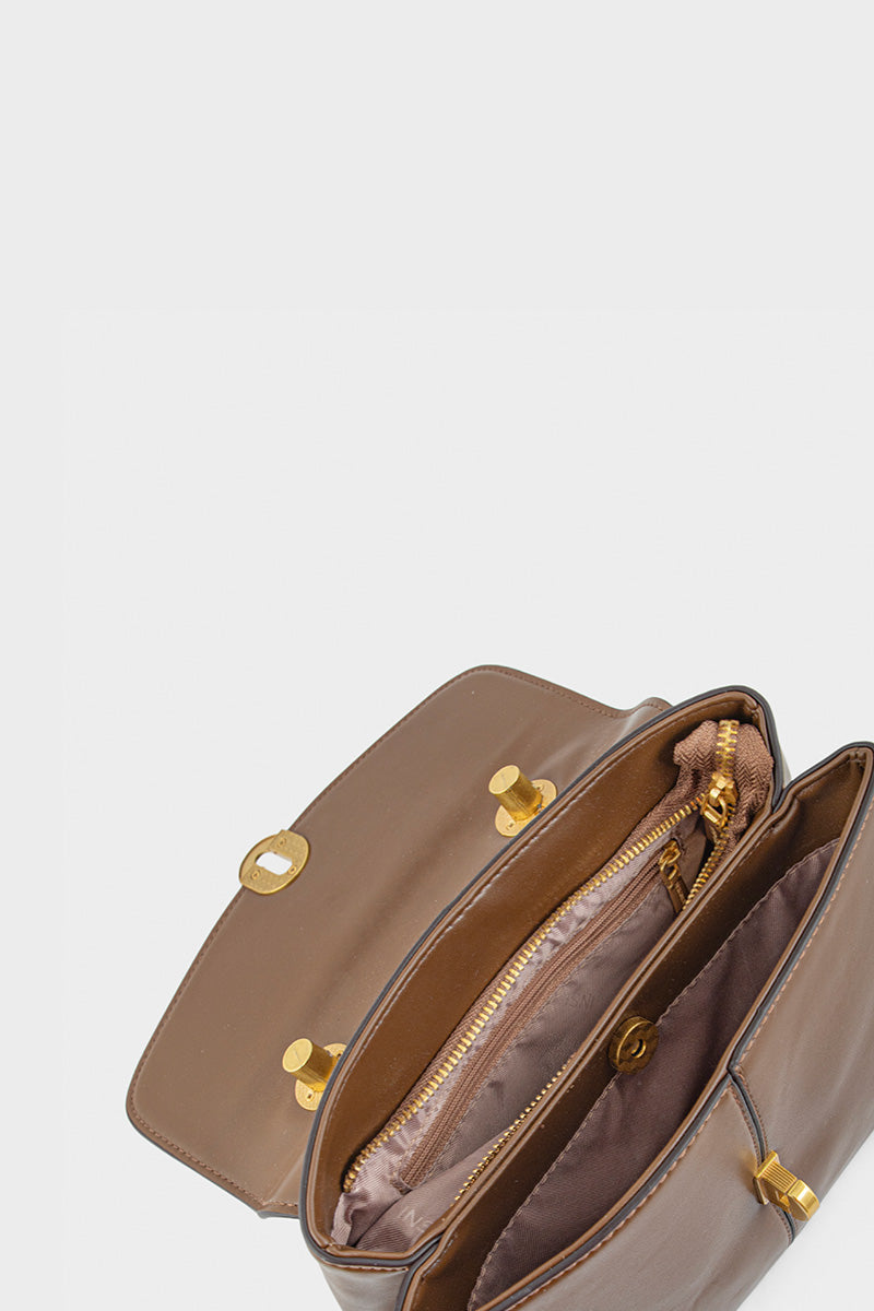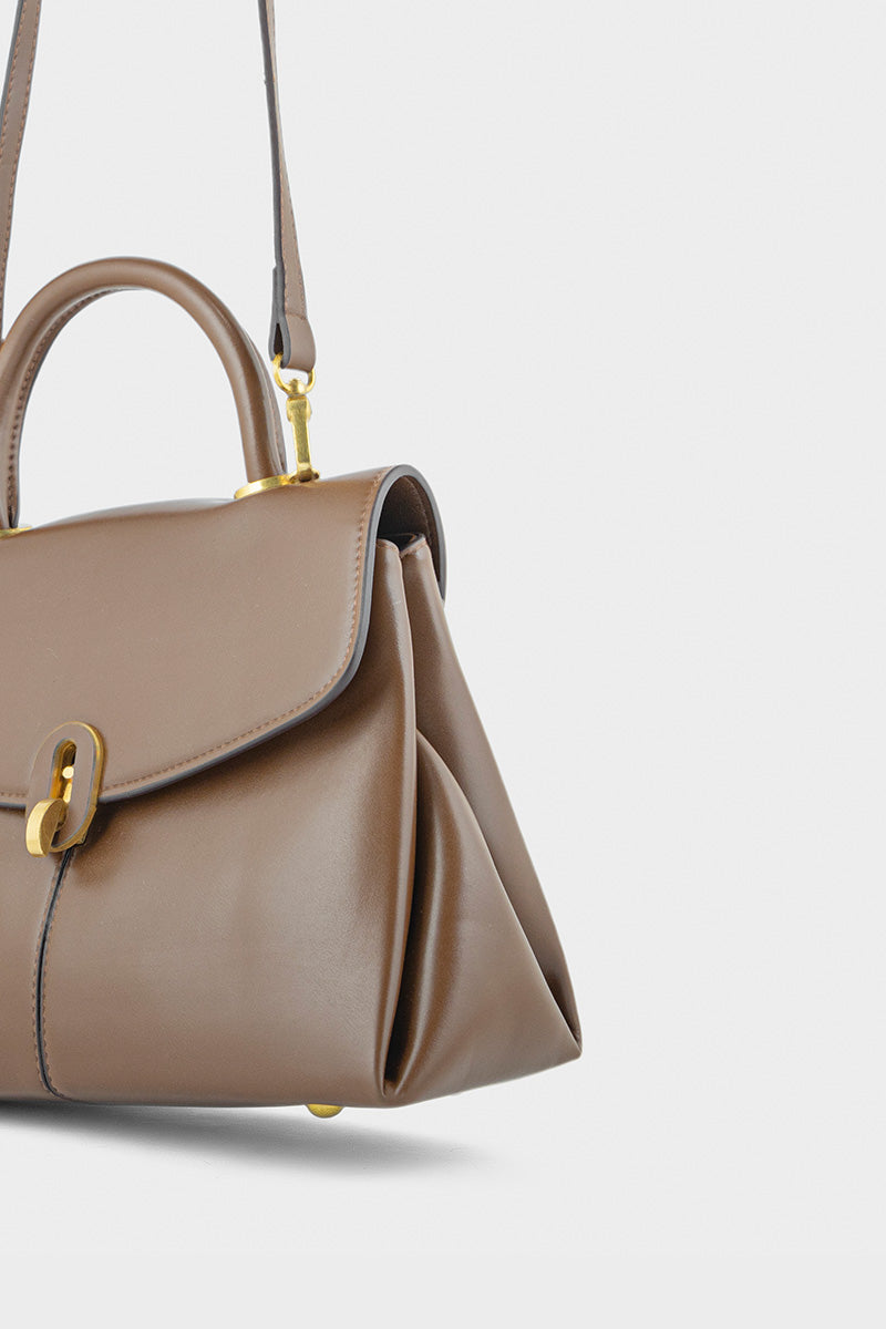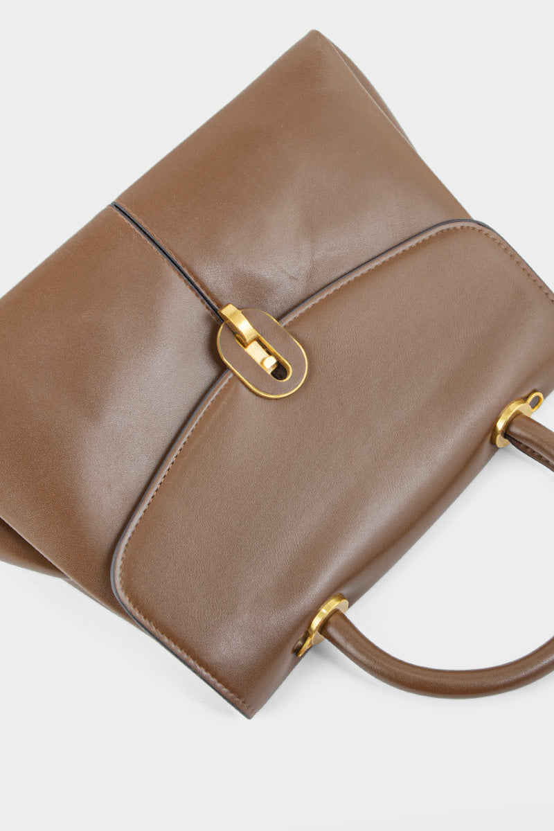Description: Classic brown saddle shoulder bag with a durable and timeless design.