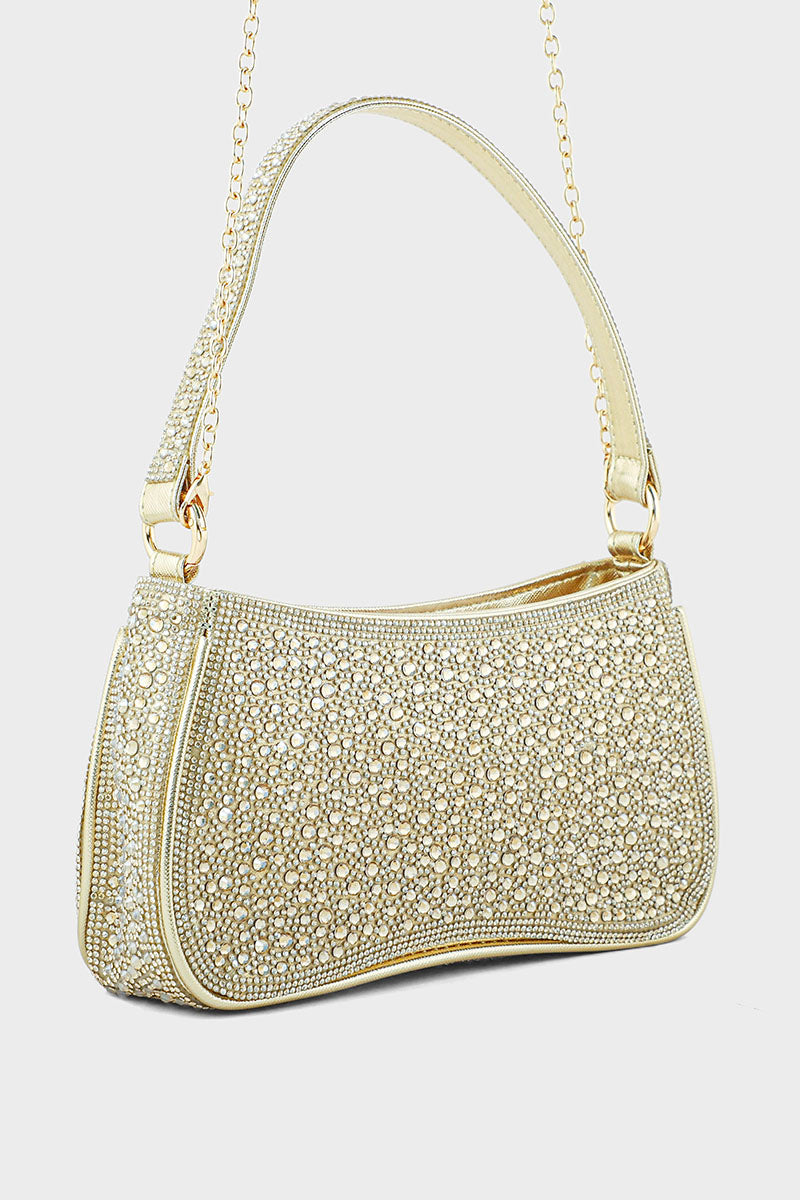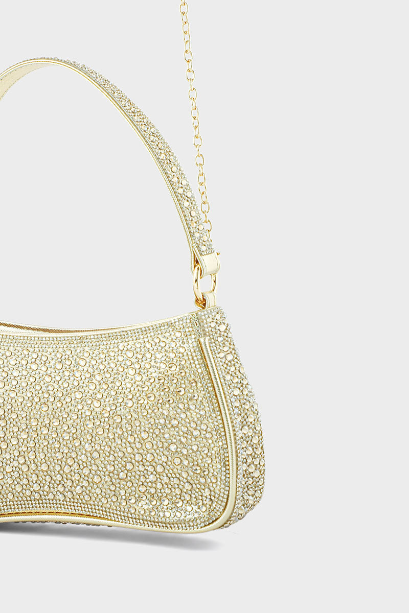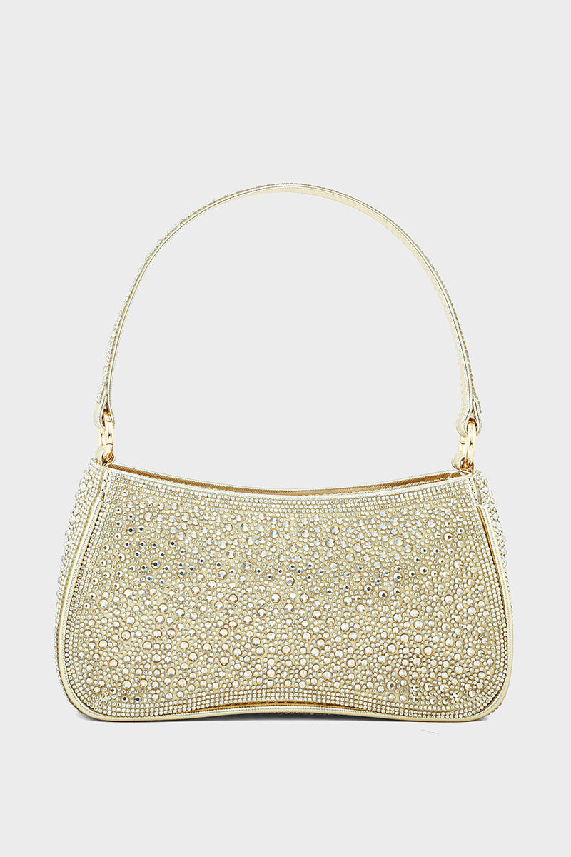 Stylish gold top-handle handbag with a sleek design and spacious interior, perfect for a chic and sophisticated look.