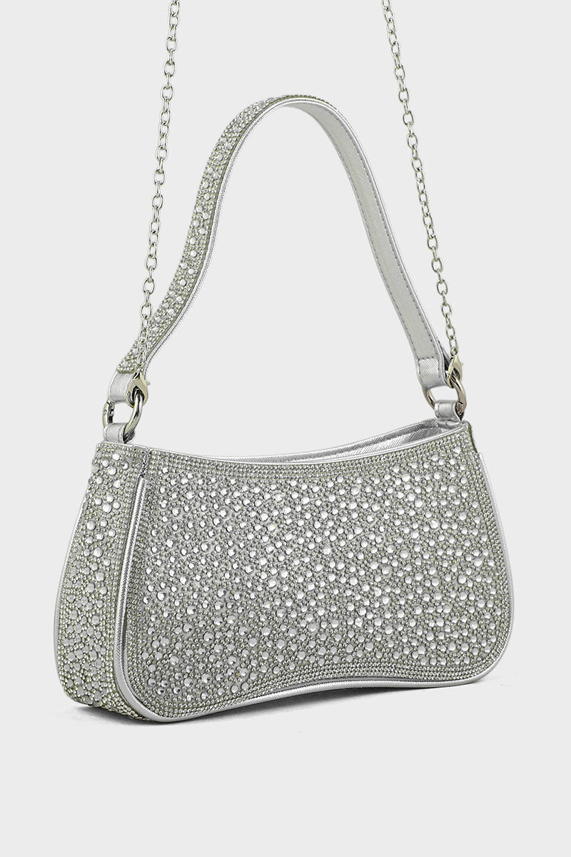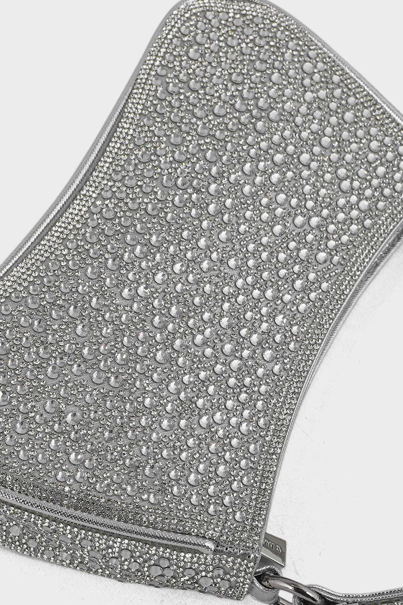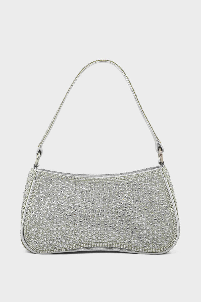 Stylish silver top-handle handbag with a sleek design and spacious interior, perfect for a chic and sophisticated look.