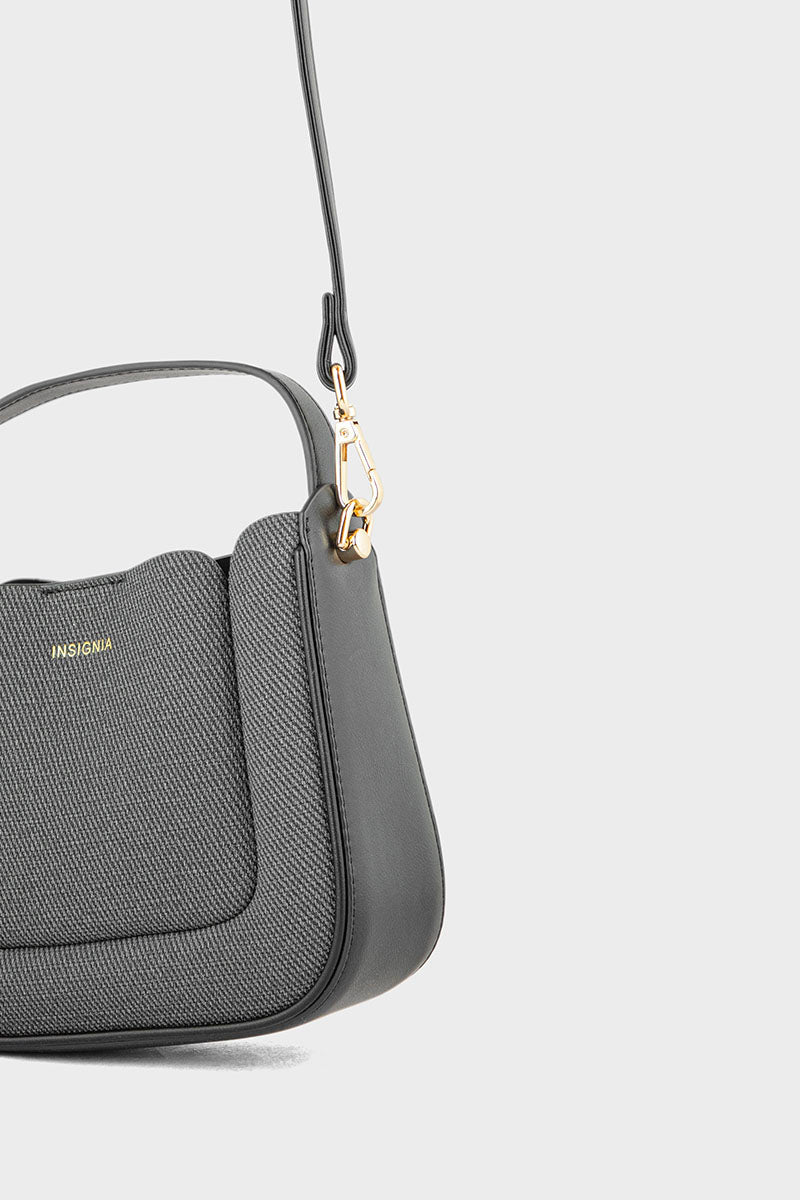 Stylish denim-blue top-handle handbag with a chic design and spacious interior, perfect for a trendy and sophisticated look.