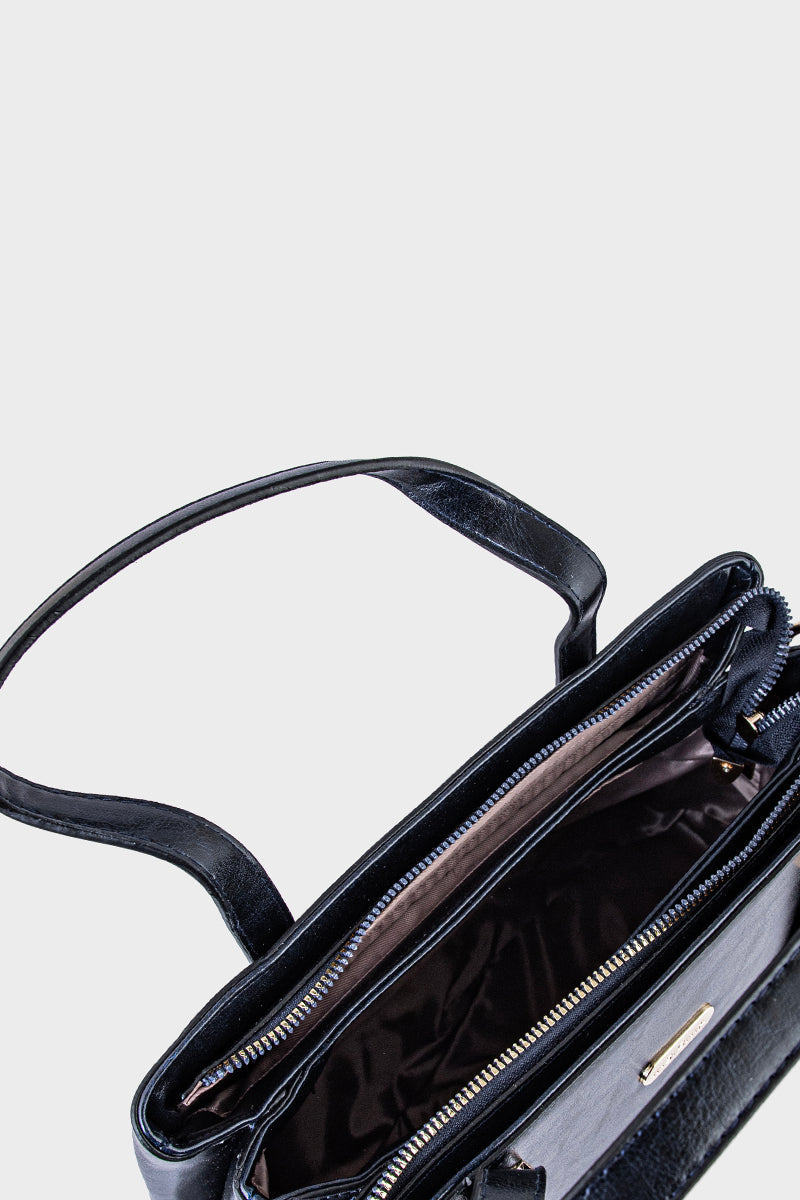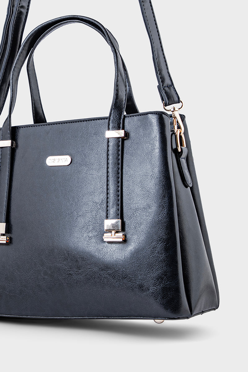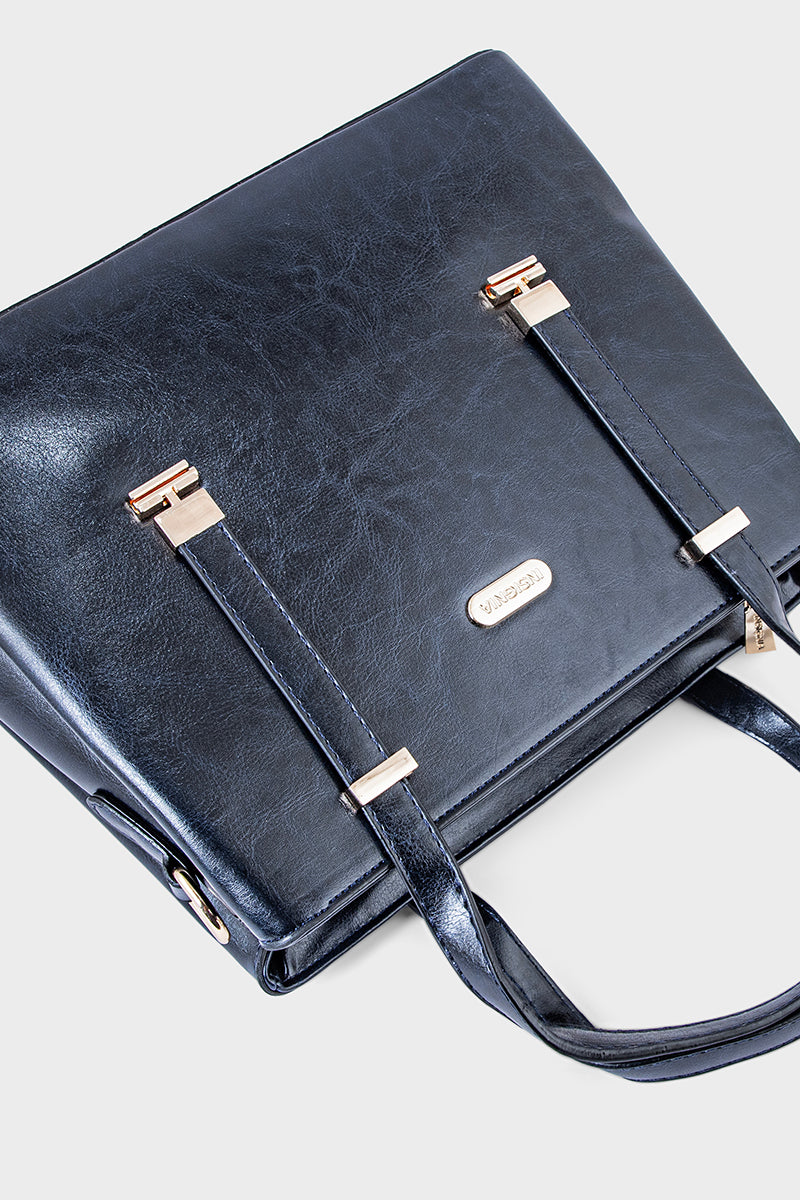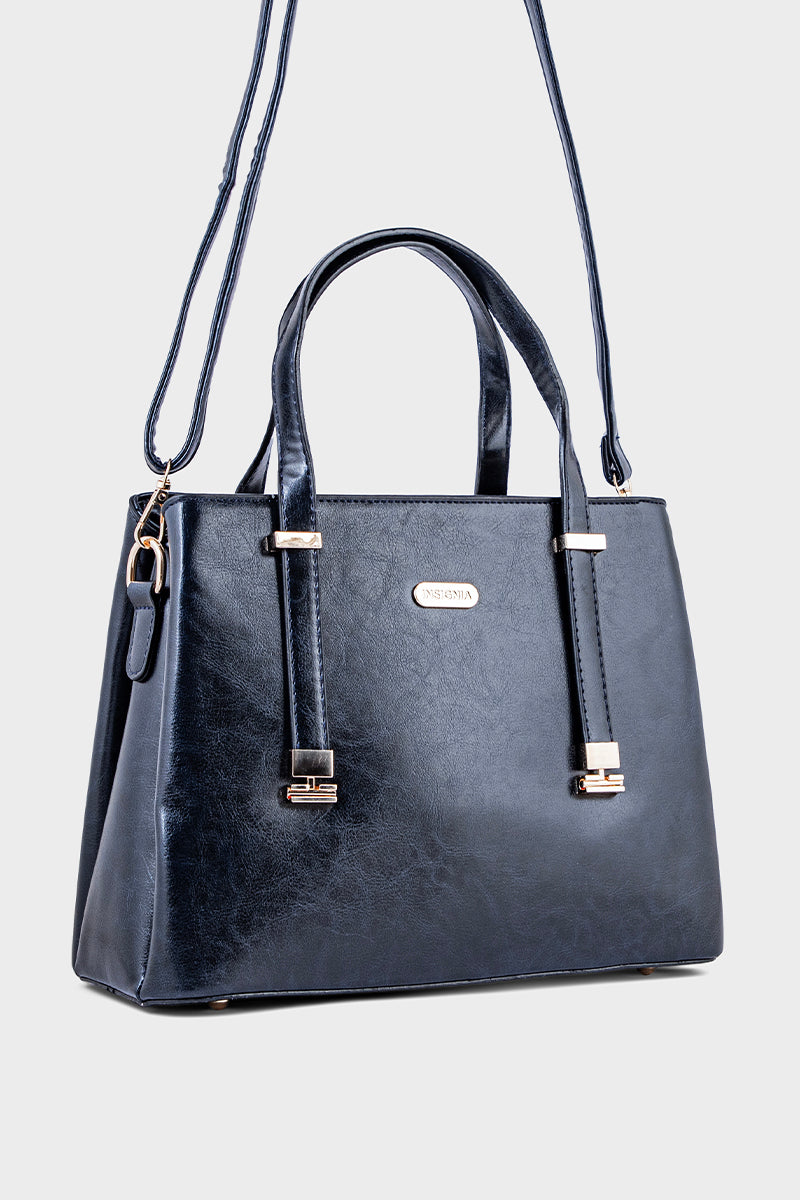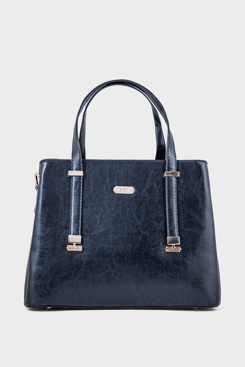 Make a bold statement with this Blue Top Handle Handbag, combining elegance and style for a perfect accessory to elevate any outfit.
