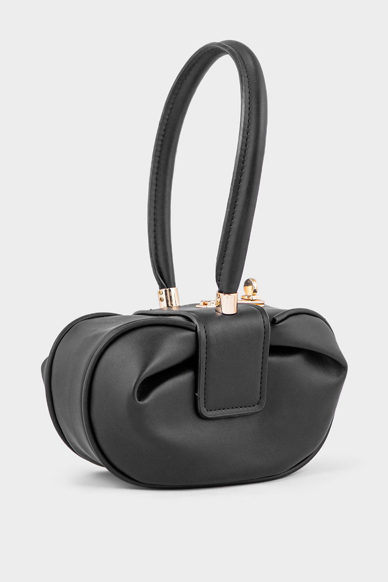 Chic black top handle handbag that effortlessly combines style and functionality.