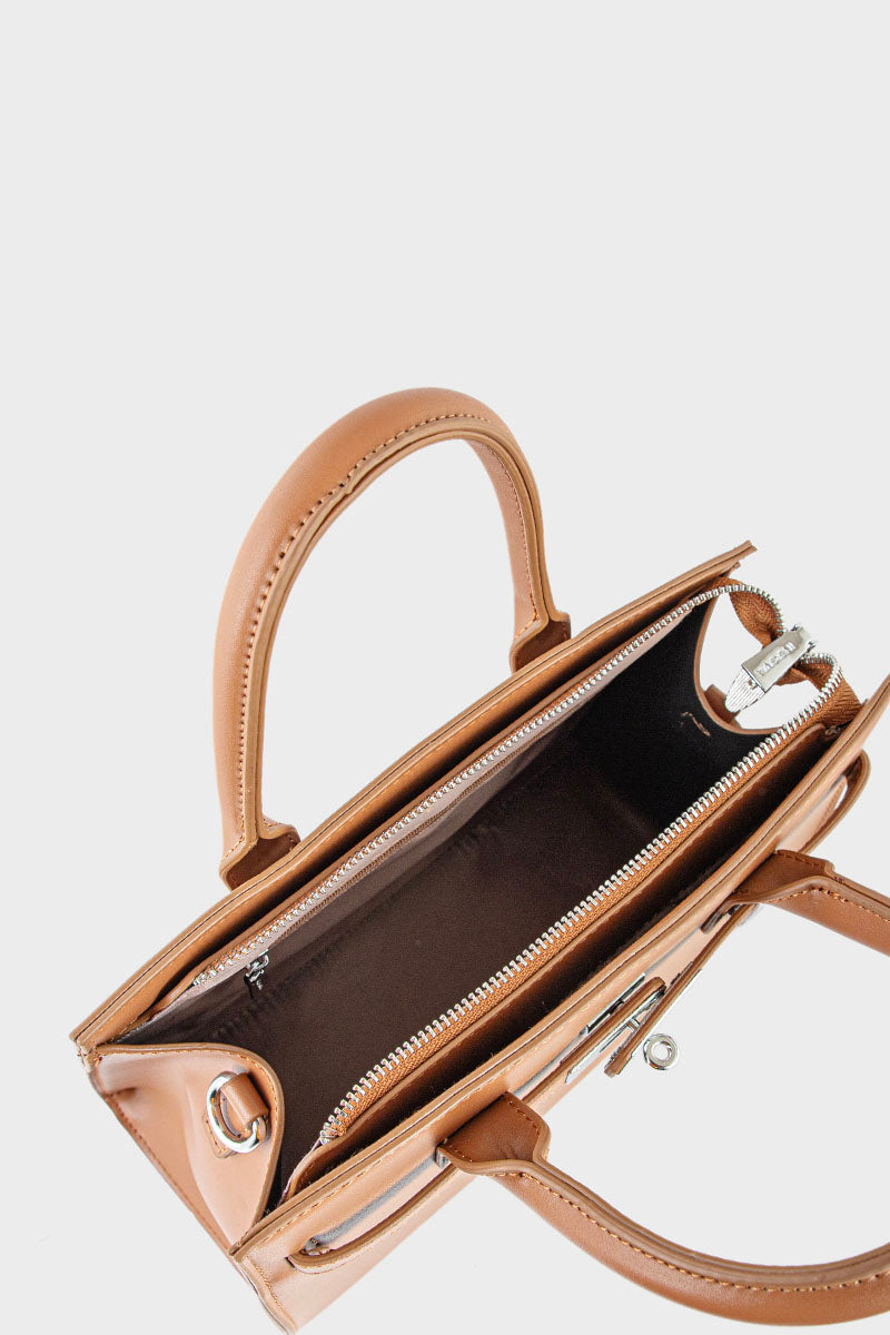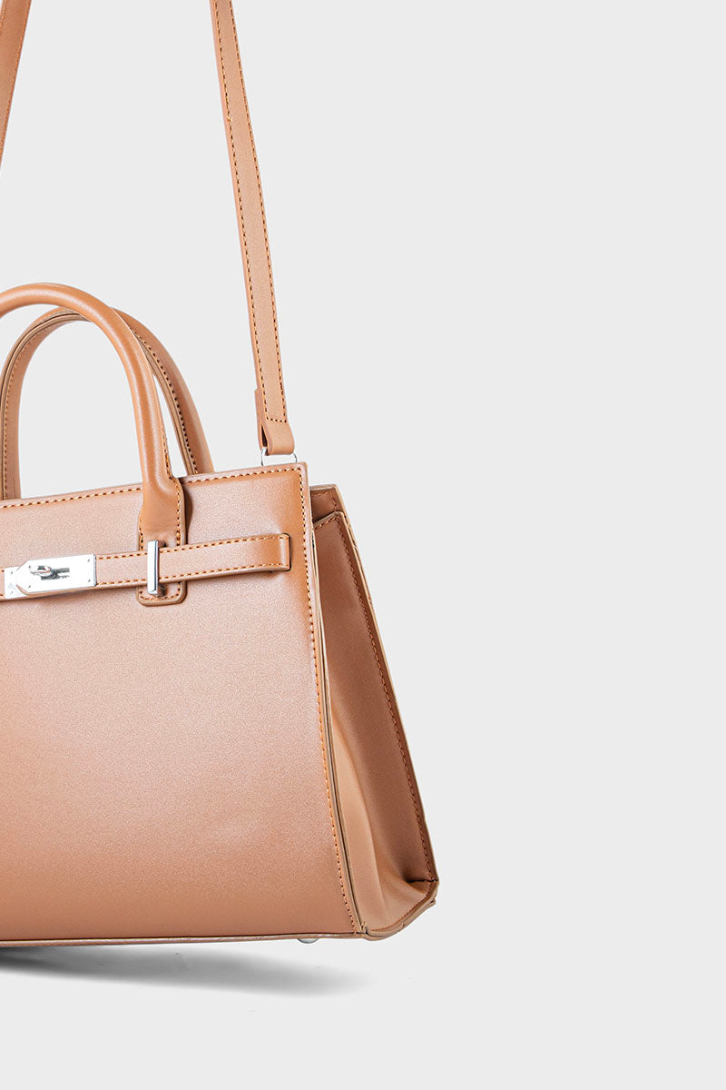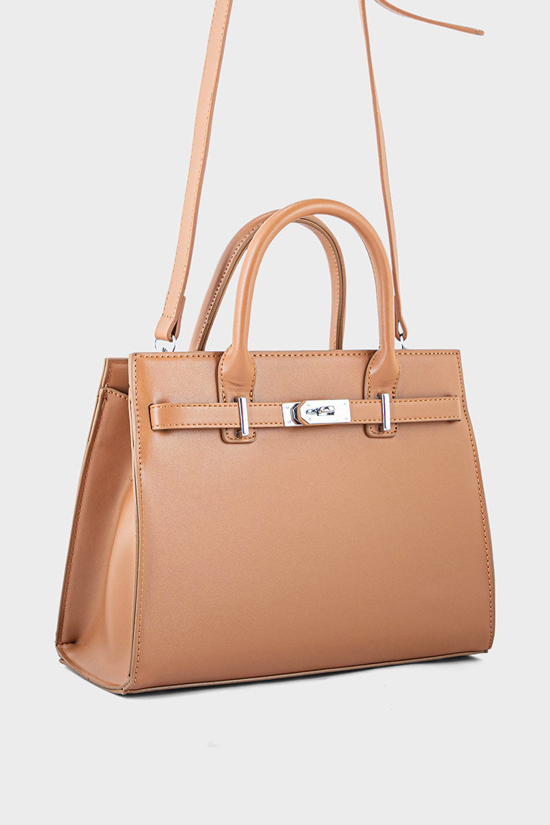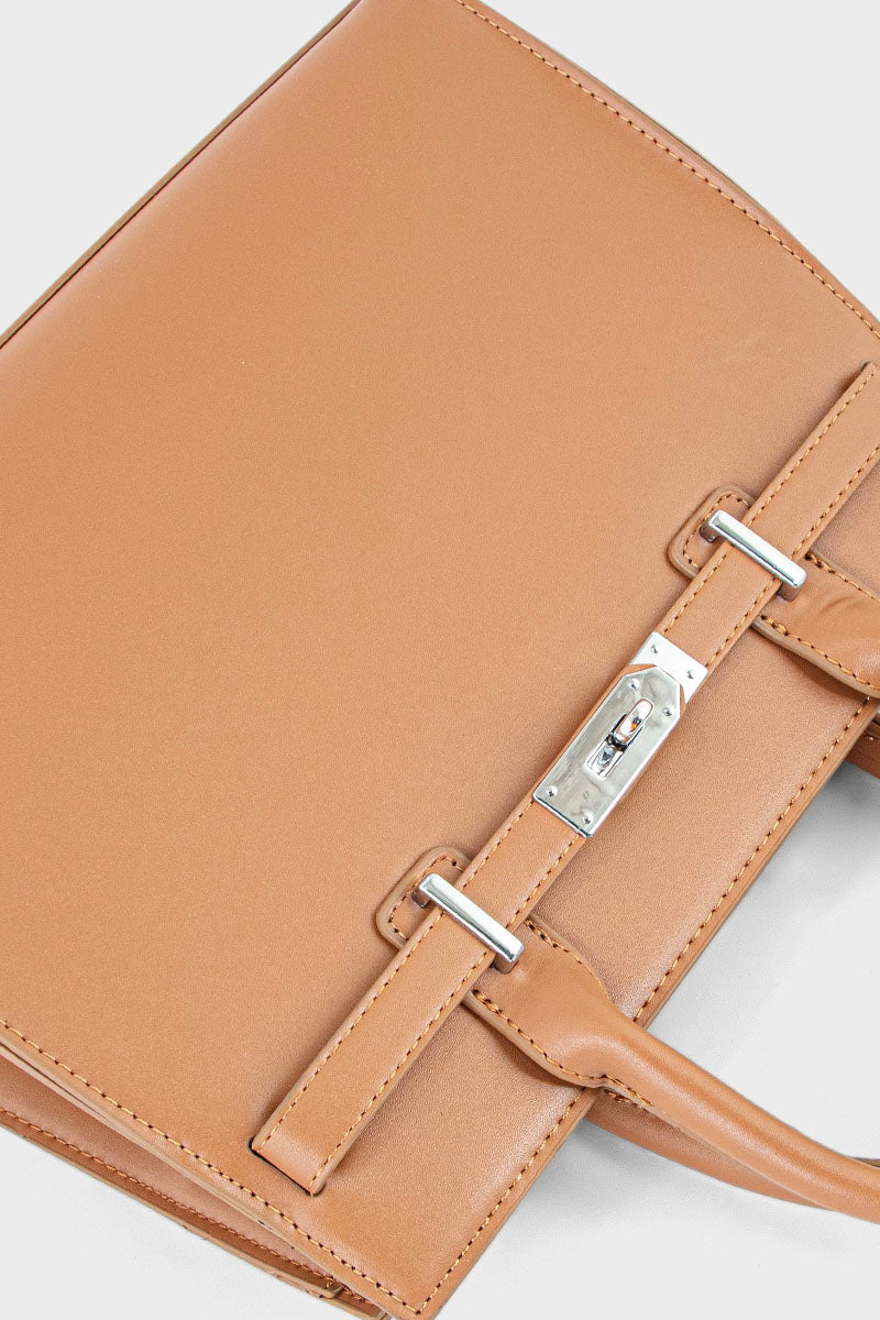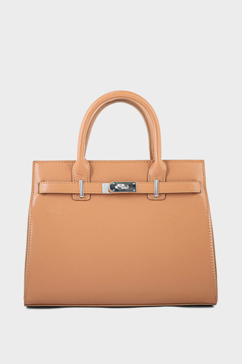 Carry timeless elegance with the Top-Handle Handbag in tan, perfect for a sophisticated and versatile look.