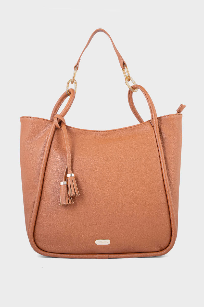 Embrace a soft, feminine touch with this Tan Tote Handbag, designed to elevate your style with elegance and versatility.