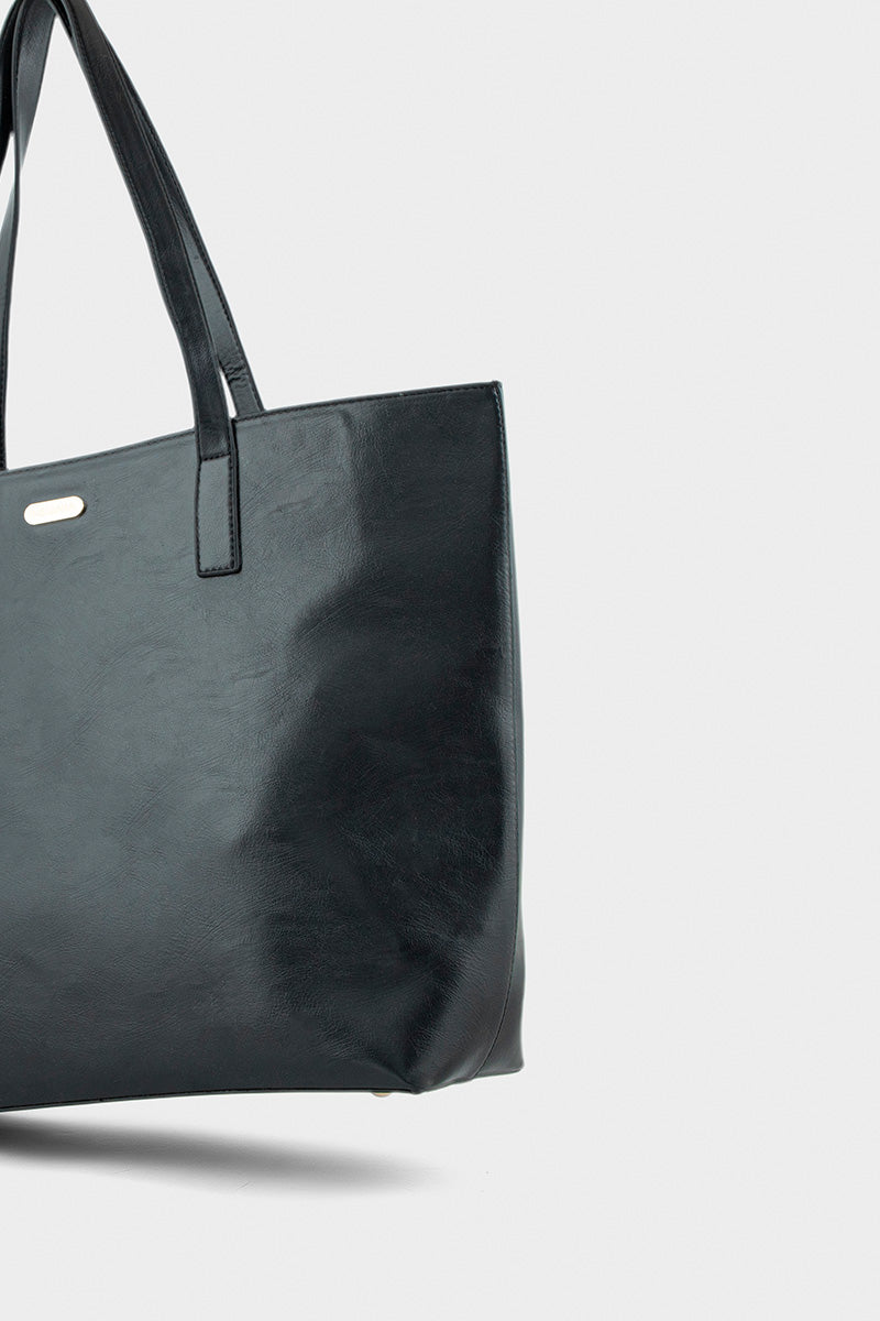 Description: Black tote handbag featuring a classic design suitable for any outfit.