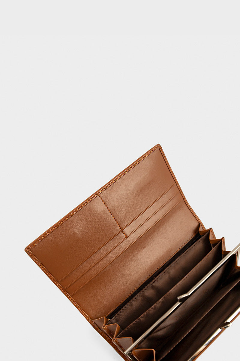 Description: Practical brown wristlet wallet with ample space for essentials.